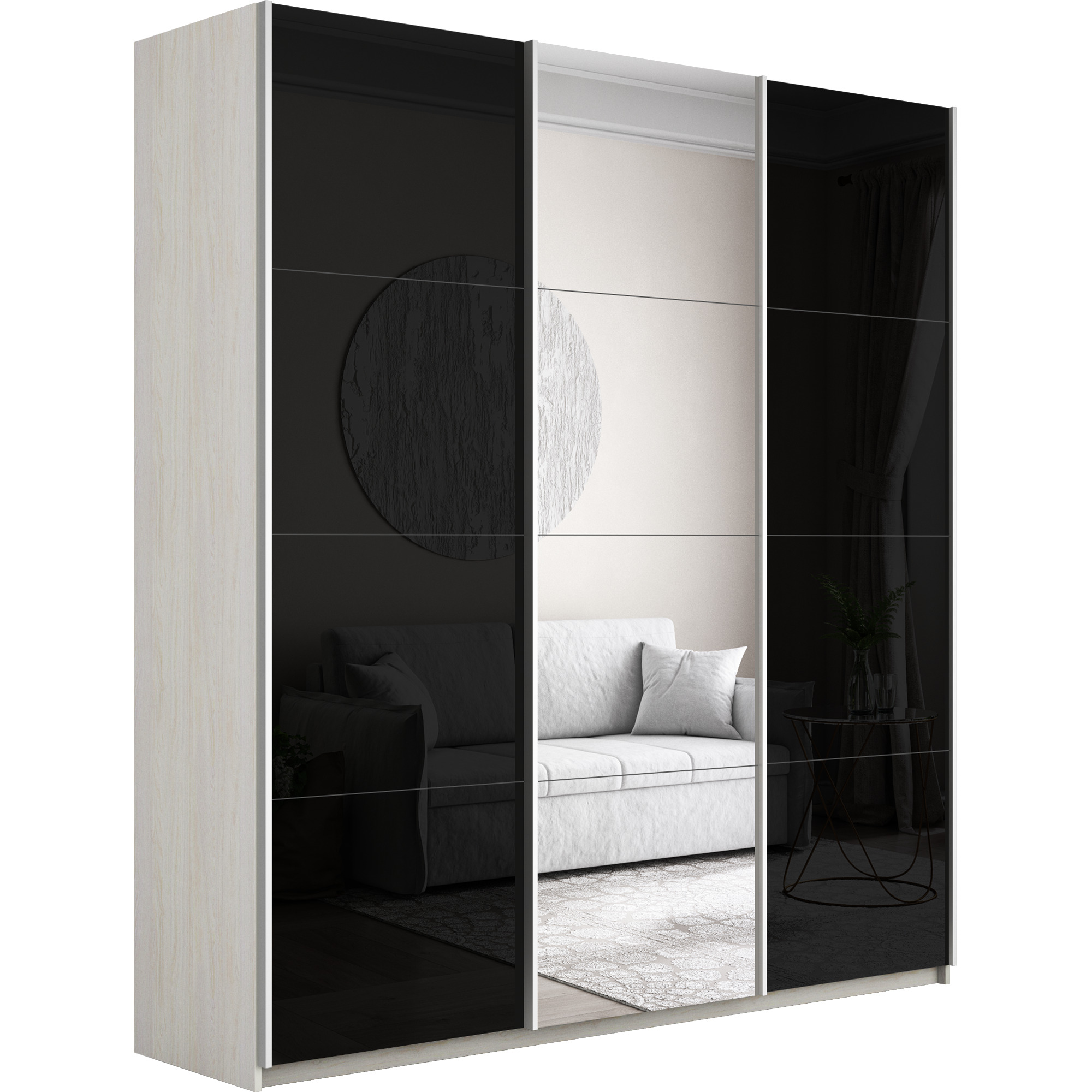 Отзывы о Столплит Шкаф-купе Прайм 3-х дверный Стекла черные/Зеркало/Доводчики 210х57х230 Ясень Анкор светлый