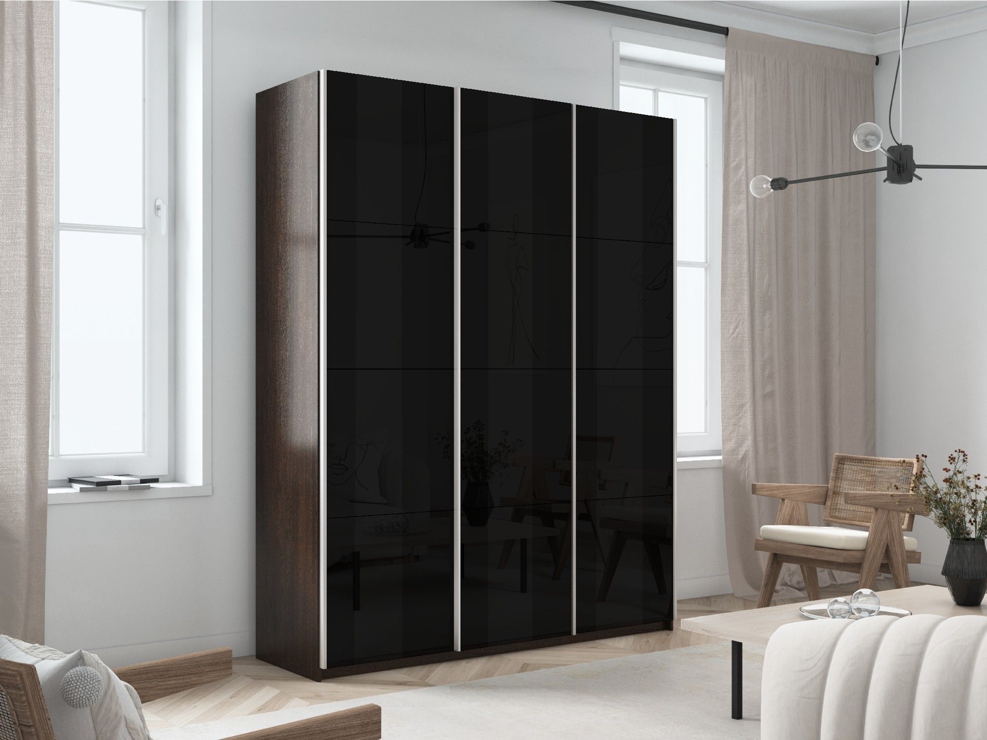Отзывы о Столплит Шкаф-купе Прайм 3-х дверный Стекла черные/Доводчики 210х57х230 Венге