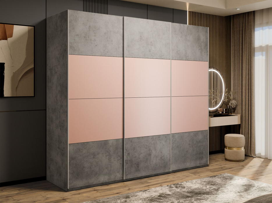 Отзывы о Столплит Шкаф-купе Эста 3-х дверный ДСП/Стекла пудра/Доводчик 270х66х240 Бетон