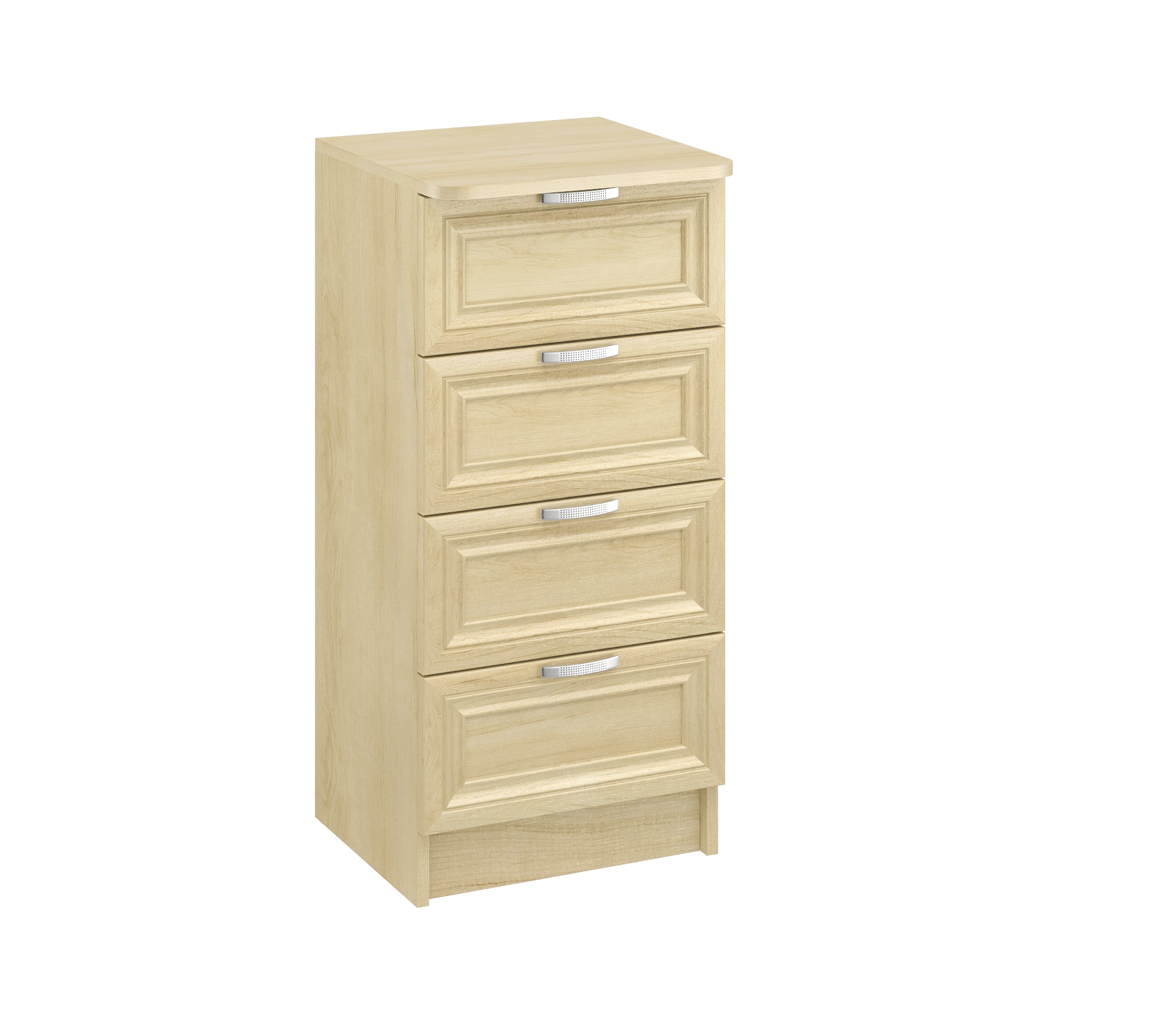 Комод ВС 400 благодаря не большой ширине 42 см,удачно разместится даже в маленьком помещении.Тем не менее,4 выдвижных ящика,позволяют разместить множество вещей.Корпус ЛДСП,фасады рамочные МДФ.