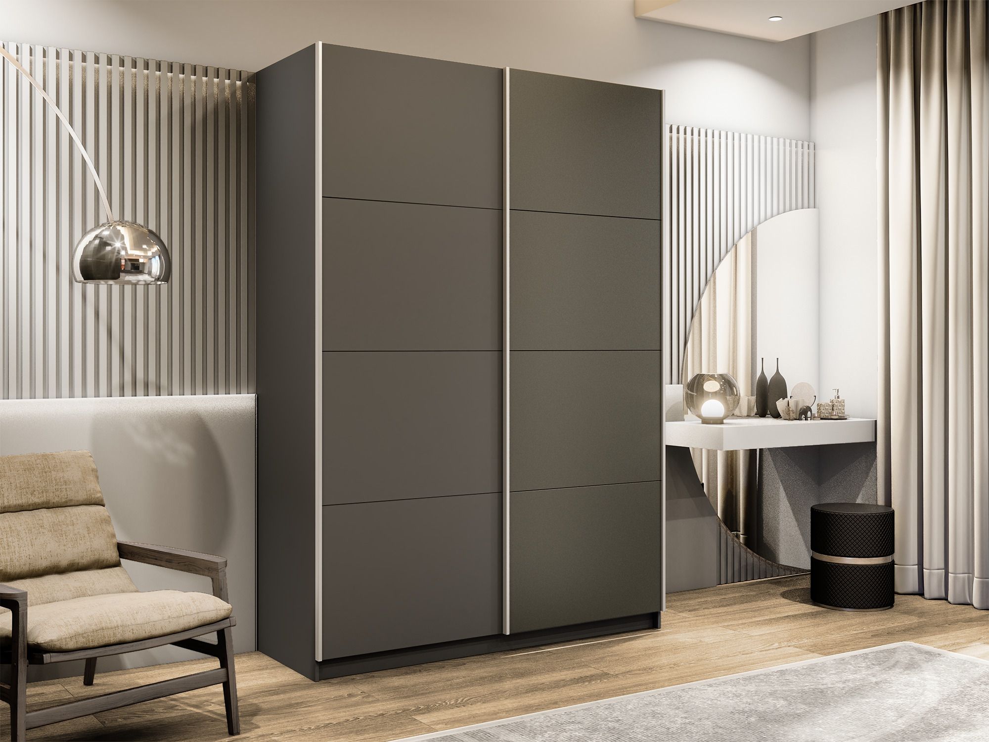 Отзывы о Столплит Шкаф-купе Прайм 2-х дверный ДСП/Стекло хаки/Доводчики 160х57х230 Диамант серый