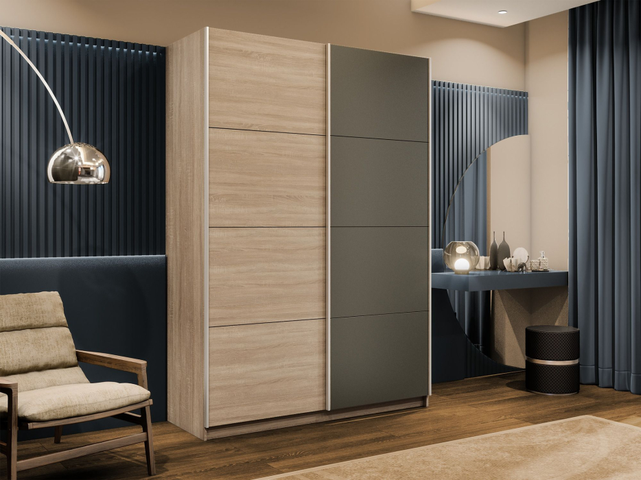 Отзывы о Столплит Шкаф-купе Прайм 2-х дверный ДСП/Стекло хаки/Доводчики 160х57х230 Дуб сонома