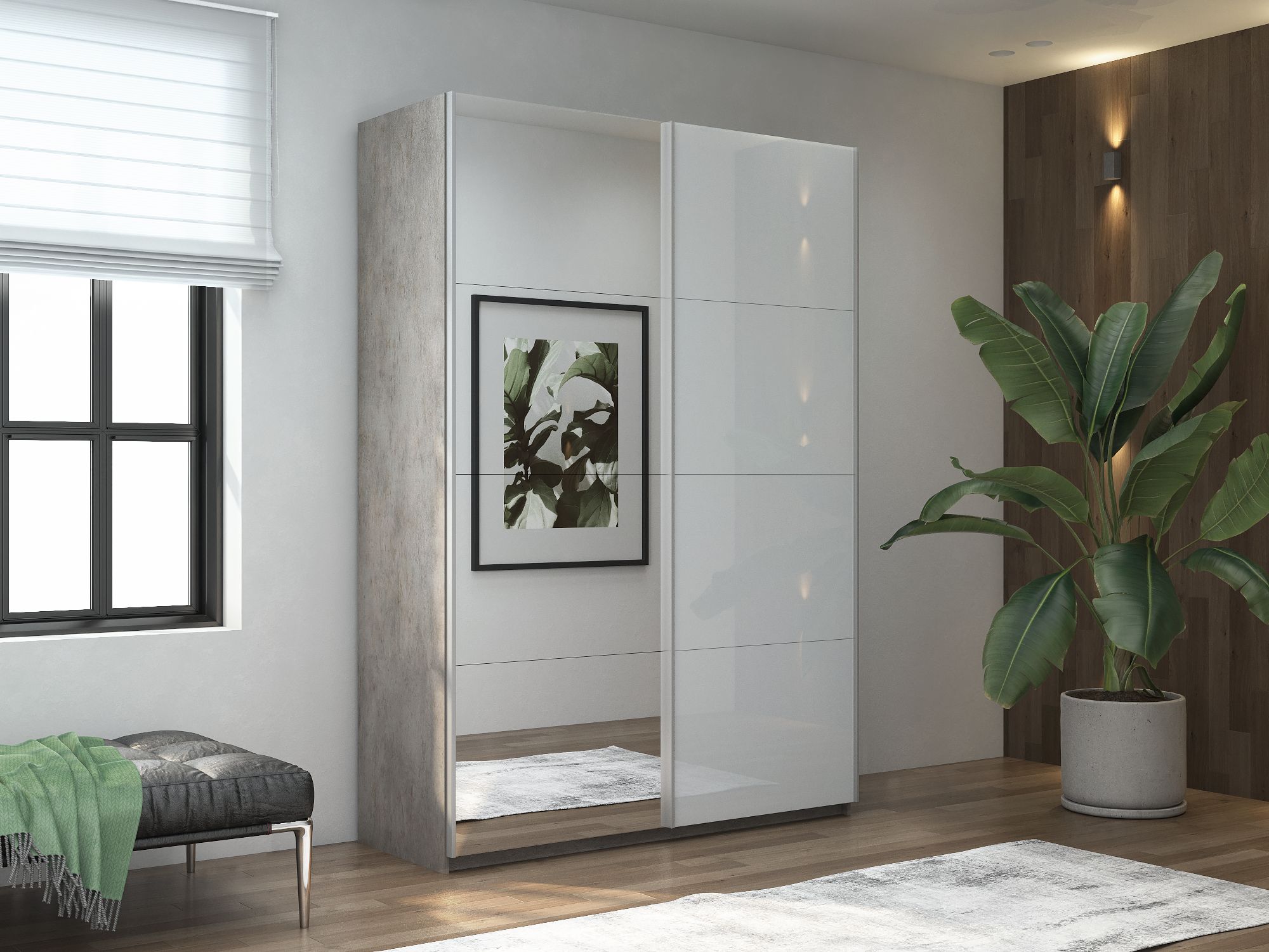 Отзывы о Столплит Шкаф-купе Прайм 2х дверный Зеркало/Белый Глянец 160х57х230 Бетон