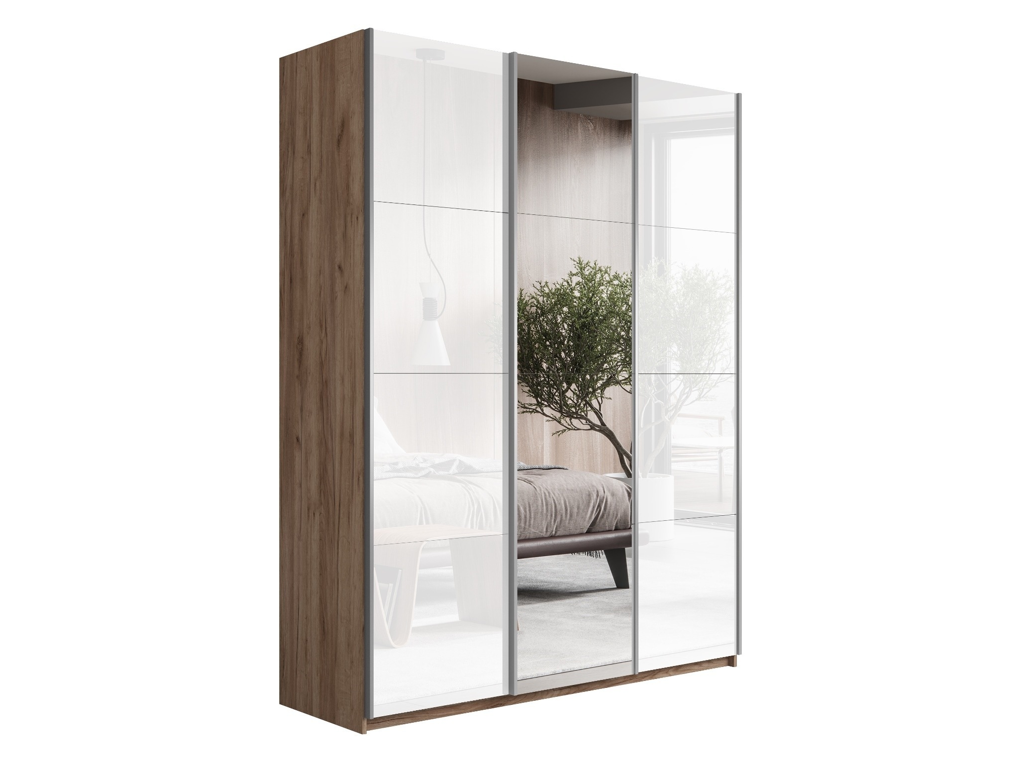 Отзывы о Столплит Шкаф Прайм трио 2-ва Стекла белого+ Зеркало 2300 х 1800 х 570 Дуб/крафт/табак