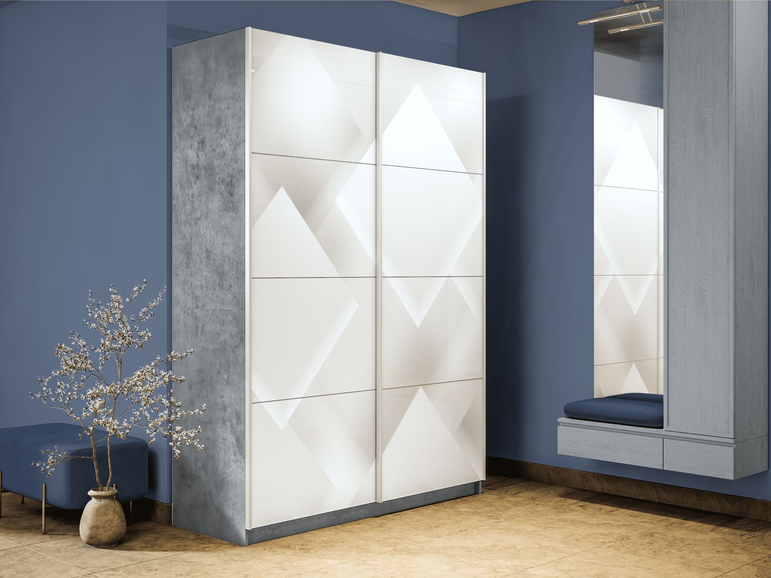 Отзывы о Столплит Шкаф-купе Прайм 2-х дверный Фотопечать Квадраты Стекла/Доводчики 120х57х230 Бетон
