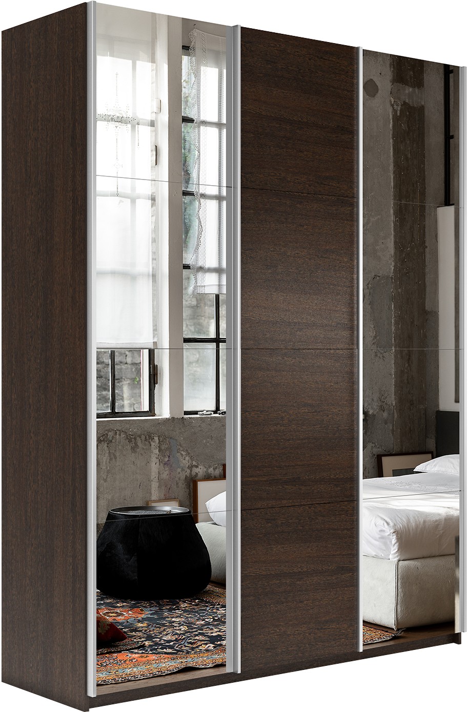 Отзывы о Столплит Шкаф Прайм трио 1ДСП+2 зеркало 2300х1800х570 Венге