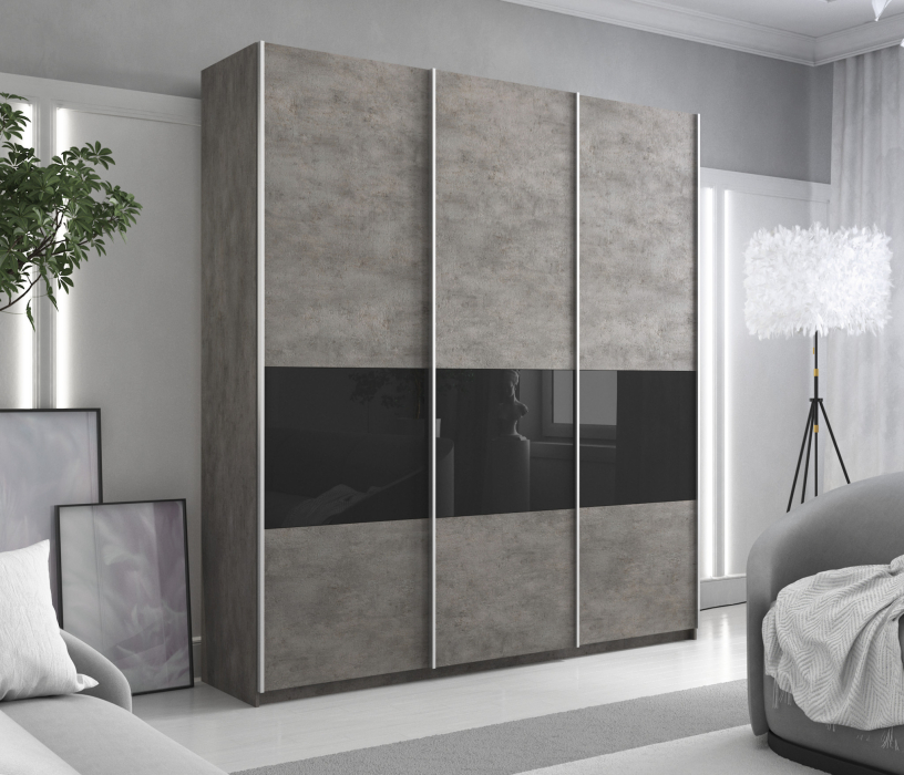 Отзывы о Столплит Шкаф-купе Прайм ДСП/Стекло черное, 240х57х230 бетон