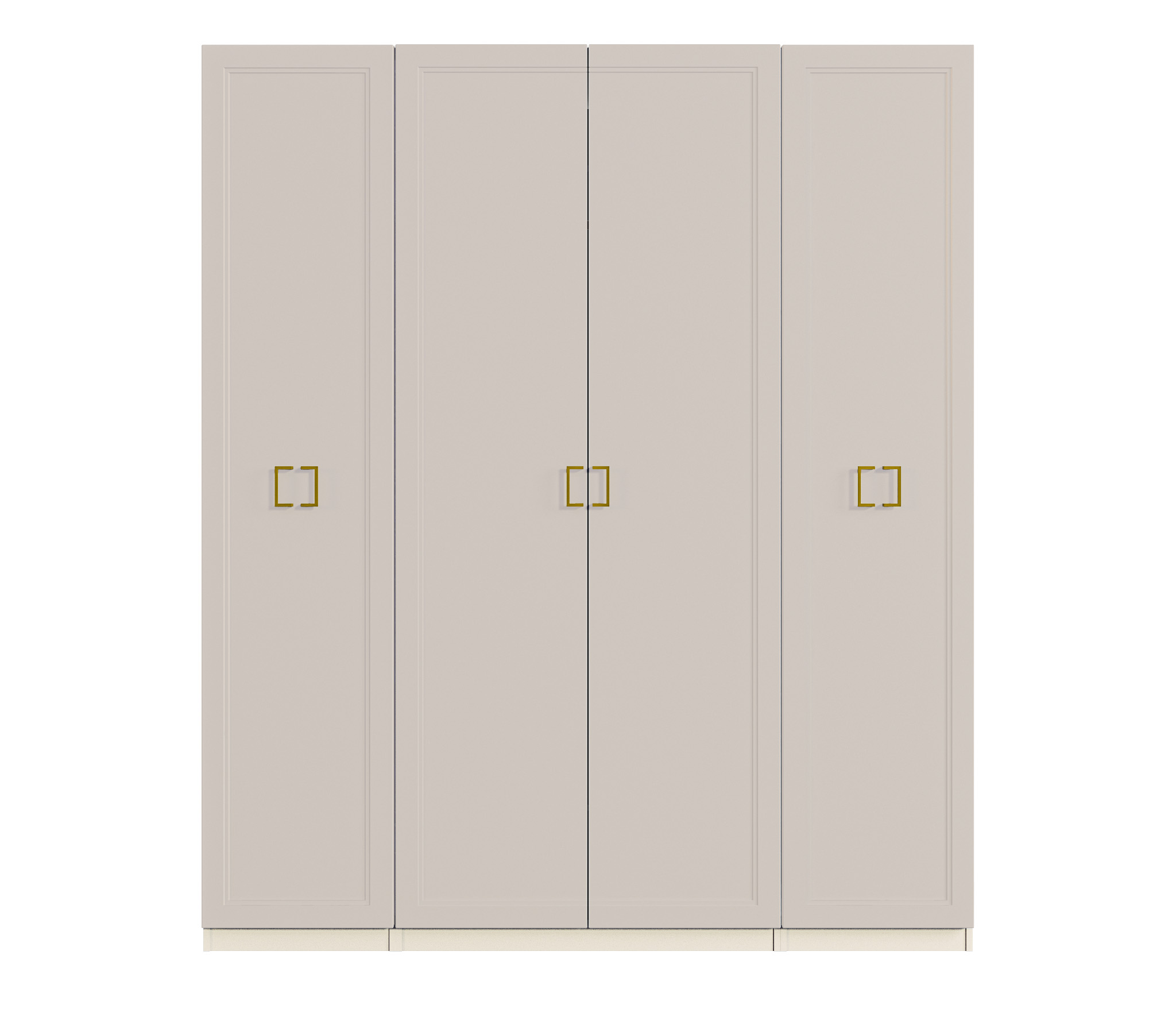 Четырехдверный шкаф Ассоль — стильное и практичное решение для вашего интерьера. Корпус из прочного ЛДСП и фасады из качественного МДФ с элегантными золотыми ручками придают шкафу изысканный вид. Внутреннее наполнение включает полки, ящики и штангу для одежды, обеспечивая удобство и порядок в хранении вещей. Идеально подходит для любой комнаты!