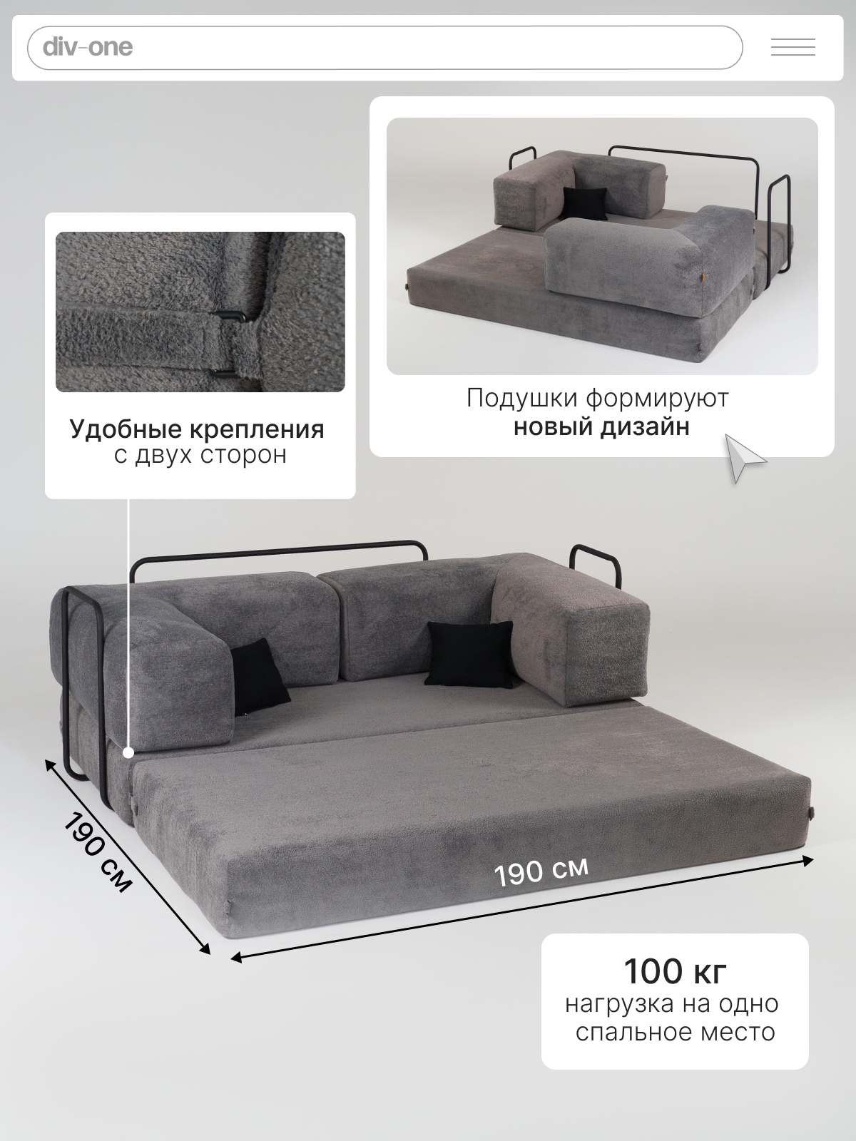 «Клауд» — это большой диван трансформер для каждого. Он станет идеальным двухспальным диваном со спинкой для молодежи, надежным семейным центром для взрослых и безопасной игровой зоной для детей. Представьте его на вашей даче, где он подарит комфортный отдых после насыщенного дня, или на утепленном балконе, превращенном в личный оазис для чтения и релаксации.