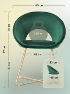 Обивка кресла выполнена из качественного велюра, который приятен на ощупь и легко чистится. Благодаря этому материалу, кресло будет служить вам долгое время, сохраняя свой первоначальный вид.