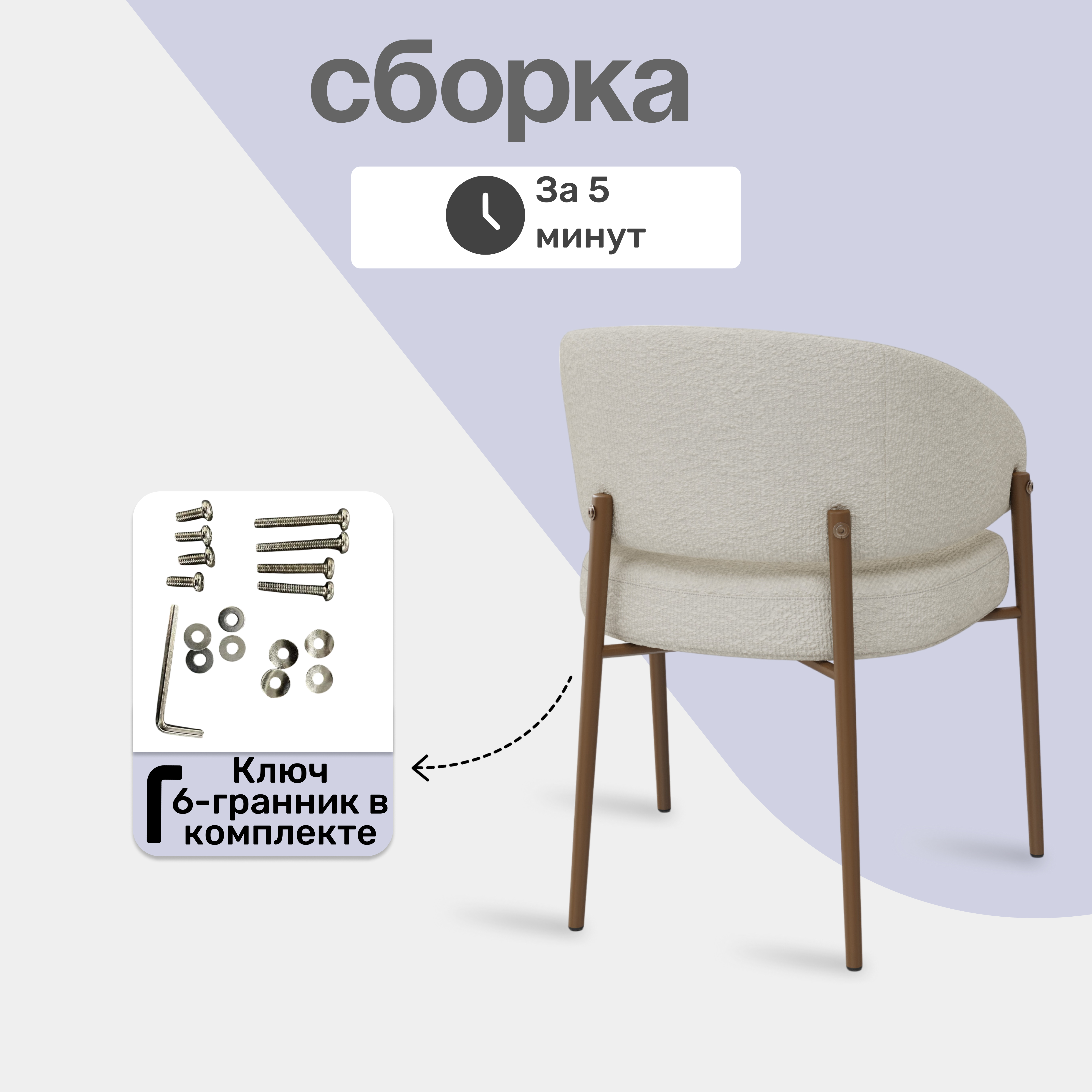 В комплект входит каркас, спинка, сиденье, инструкция, фурнитура и ключ для сборки. Это позволяет легко и быстро собрать кресло самостоятельно, не прибегая к услугам специалистов.