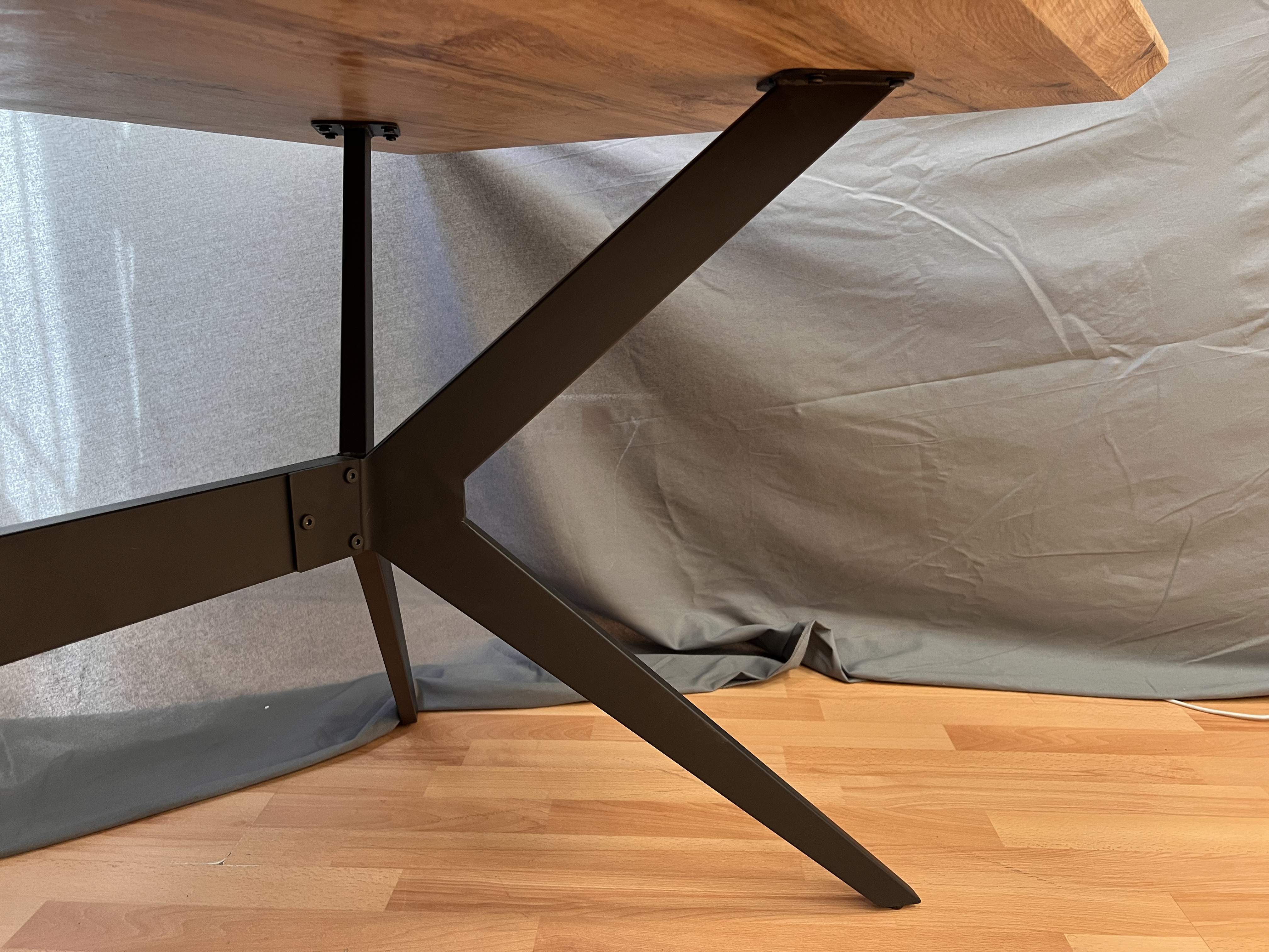 Металлическое подстолье с перекладиной гармонично дополняет общий дизайн, придавая конструкции устойчивость и надежность. Эстетика loft прекрасно играет на контрасте между массивной, фактурной столешницей из МДФ и легкостью металлических элементов. Этот стол станет не только практичным решением для обеденной зоны, но и выразительным акцентом в интерьере, привнося современный характер и стиль. Благодаря своему дизайну, он легко вписывается как в индустриальные, так и в более классические пространства, став идеальным выбором для тех, кто ценит качество и оригинальность.