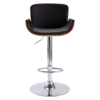 Металлическая ножка с хромированным покрытием придают стулу не только прочность, но и стильный внешний вид, создавая ощущение легкости и изящества. Лакированная выгнутая фанера сиденья обтянута качественной экокожей, которая доступна в элегантных черном цвете, обеспечивая комфортное прилегание и долгий срок службы.