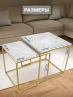 Удобный комплект из 2х квадратных столиков представляет собой дизайнерскую новинку, которая станет фокусным элементом в вашем интерьере. Длина × Ширина × Высота большой столик: 500х500х510мм. Длина × Ширина × Высота маленький столик: 450х450х460 мм. Вес товара, кг: 7,9. Материал столешницы: МДФ. Материал подстолья: Металл