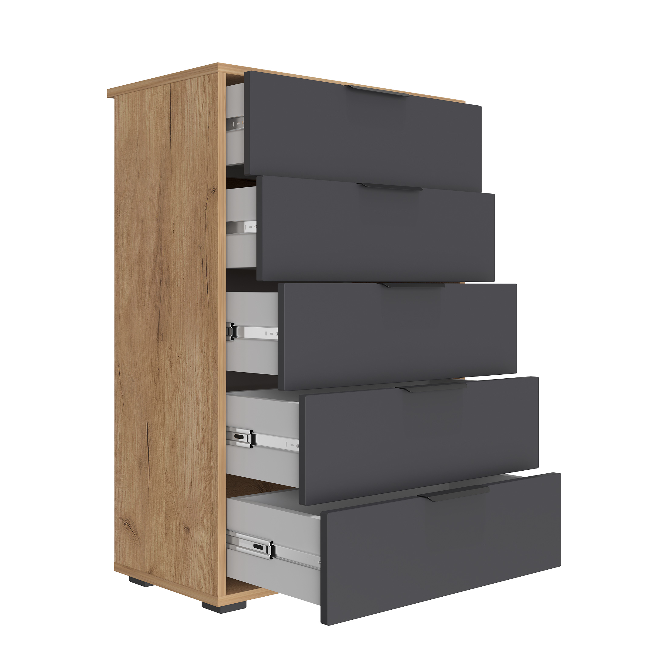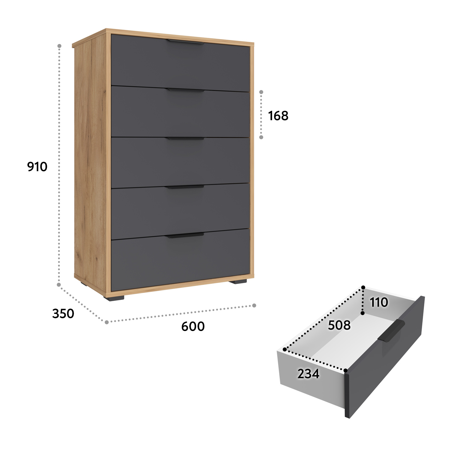 Комод для одежды Оптима ОП-05 – это удобное и вместительное решение для систематизированного хранения вещей в спальне, прихожей или гардеробной. Основные характеристики: ✔ 5 выдвижных ящиков – просторное и организованное хранение одежды, белья, аксессуаров и других мелочей. ✔ Телескопические направляющие полного выдвижения – плавный ход ящиков и легкий доступ к содержимому. ✔ Свес крышки (25 мм) – позволяет комоду плотно прилегать к стене даже при наличии плинтуса. ✔ Регулируемые опоры (20 мм) – компенсируют неровности пола для устойчивости. ✔ Металлические ручки – прочные и стильные, дополняют дизайн. Преимущества комоды: