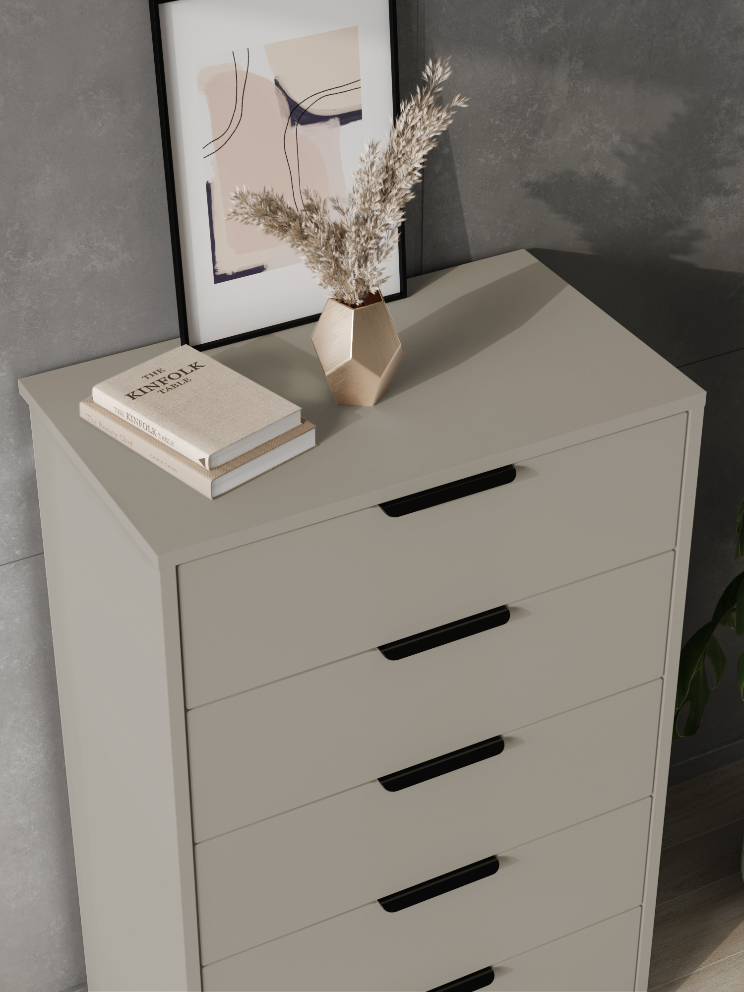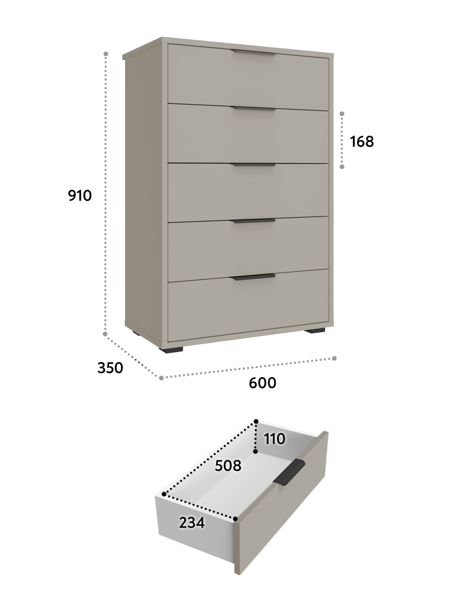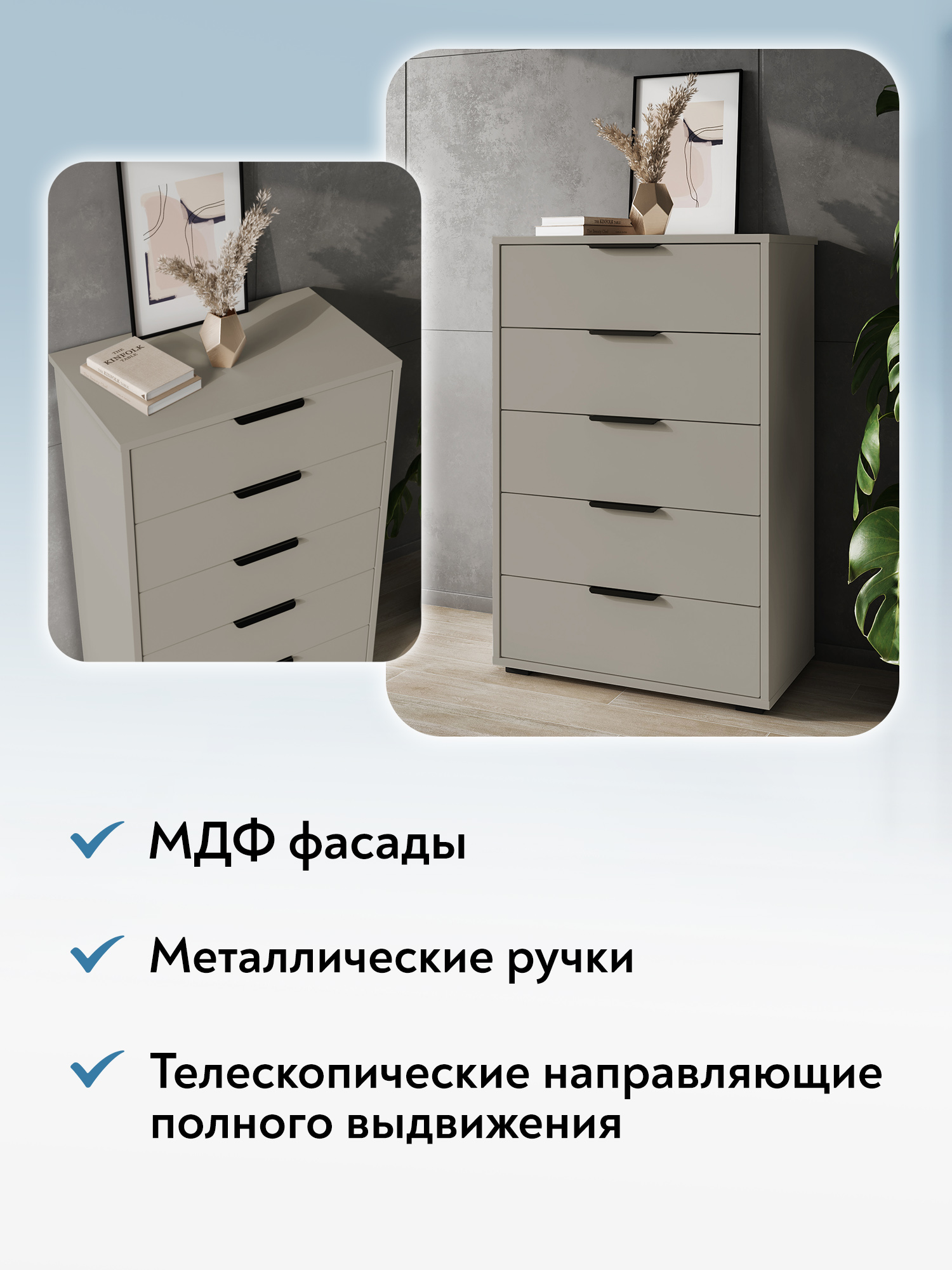 Комод для одежды Оптима ОП-05 – это удобное и вместительное решение для систематизированного хранения вещей в спальне, прихожей или гардеробной. Основные характеристики: ✔ 5 выдвижных ящиков – просторное и организованное хранение одежды, белья, аксессуаров и других мелочей. ✔ Телескопические направляющие полного выдвижения – плавный ход ящиков и легкий доступ к содержимому. ✔ Свес крышки (25 мм) – позволяет комоду плотно прилегать к стене даже при наличии плинтуса. ✔ Регулируемые опоры (20 мм) – компенсируют неровности пола для устойчивости. ✔ Металлические ручки – прочные и стильные, дополняют дизайн. Преимущества комоды:
