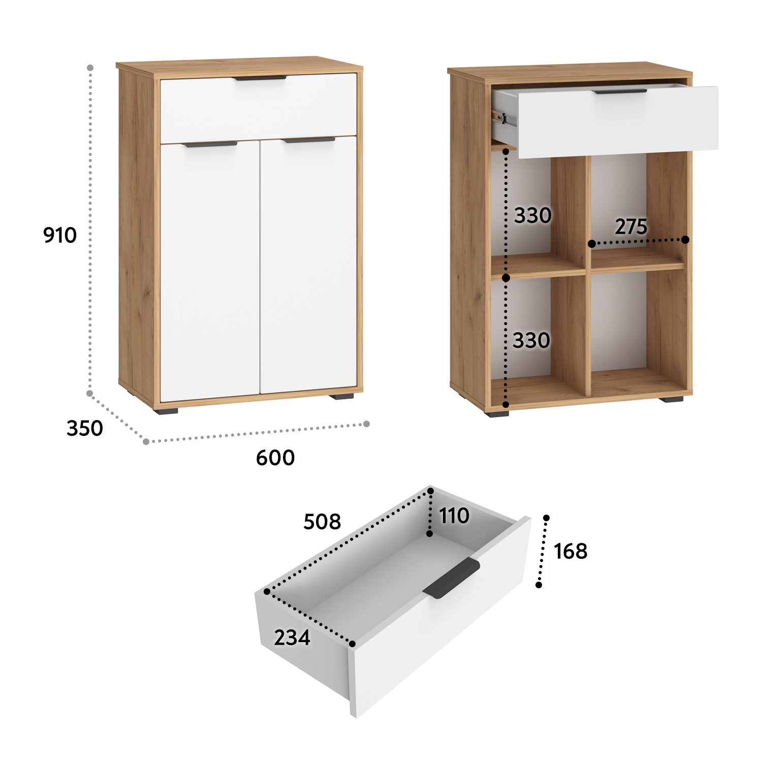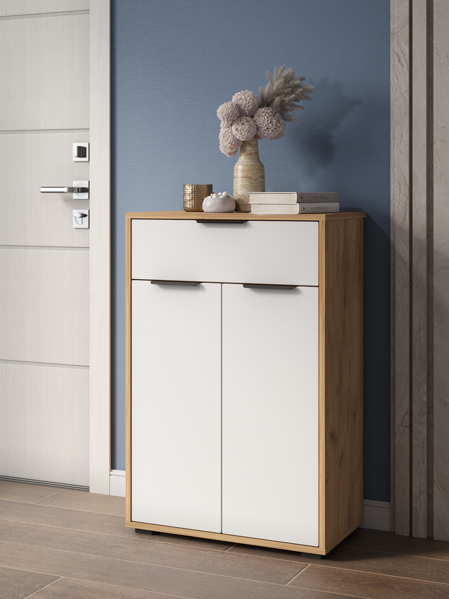 Комод Оптима ОП-06 – это функциональный и стильный предмет мебели, который идеально подойдет для хранения вещей в спальне, прихожей или гостиной. Его продуманная конструкция сочетает удобство, вместительность и современный дизайн. Ключевые особенности комода Оптима: ✔ Комбинированная система хранения – включает распашные дверцы с полками и выдвижной ящик для мелочей. ✔ Петли с доводчиками – плавное и бесшумное закрывание дверей. ✔ Телескопические направляющие полного выдвижения – удобный доступ к содержимому ящика. ✔ Свес крышки (25 мм) – плотное прилегание к стене даже с плинтусом. ✔ Регулируемые опоры (20 мм) – устойчивость на любом полу. ✔ Металлические ручки – долговечность и эстетика. Преимущества модели комода ОП-06: