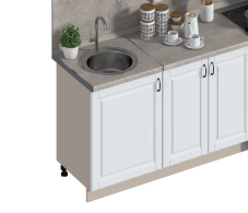 – Столешница для модуля с мойкой уже имеет вырез, подходящий под конкретную модель мойки (размеры мойки: диаметр — 50 см, чаша — 37 см, глубина — 16 см).