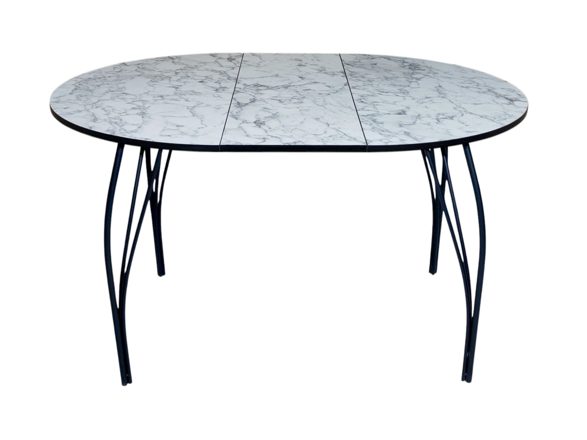 Обеденный стол Барин, D 90-120х75 см., вставка 30 см., материал столешницы: ЛДСП, 18 мм., форма столешницы: круглая, исполнение: двухсторонне, конструкция: раздвижной/безцарговый, механизм раздвижения: синхронный со стопором, торцы столешницы: кромка ПВХ, элегантная металлическая опора, трехлучевая (1/18 мм., и 2/12 мм.), с ПВХ заглушками, порошковая покраска. Форма поставки: в разобранном виде. Вид упаковки: картонная коробка.
