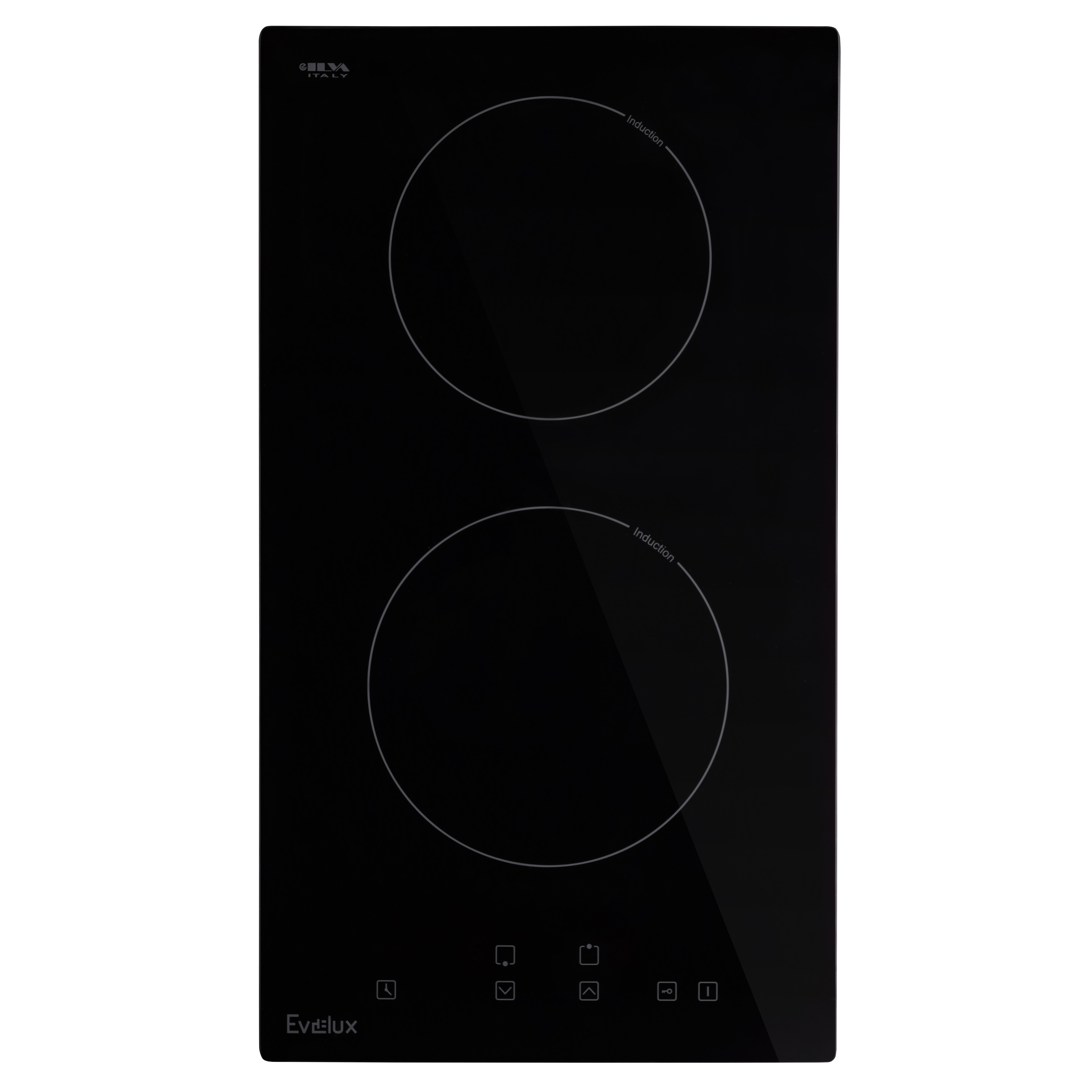 Варочная панель электрическая, индукция, 30 см, 2 конфорки, функция Booster на 2 зонах, сенсорное управление, 9 уровней мощности, таймер 1-99 мин, блокировка управления, защитное отключение, защита детей, 2900 Вт, вилка питания, черное стекло ILVA (Италия), 290 x 520 x 62мм.