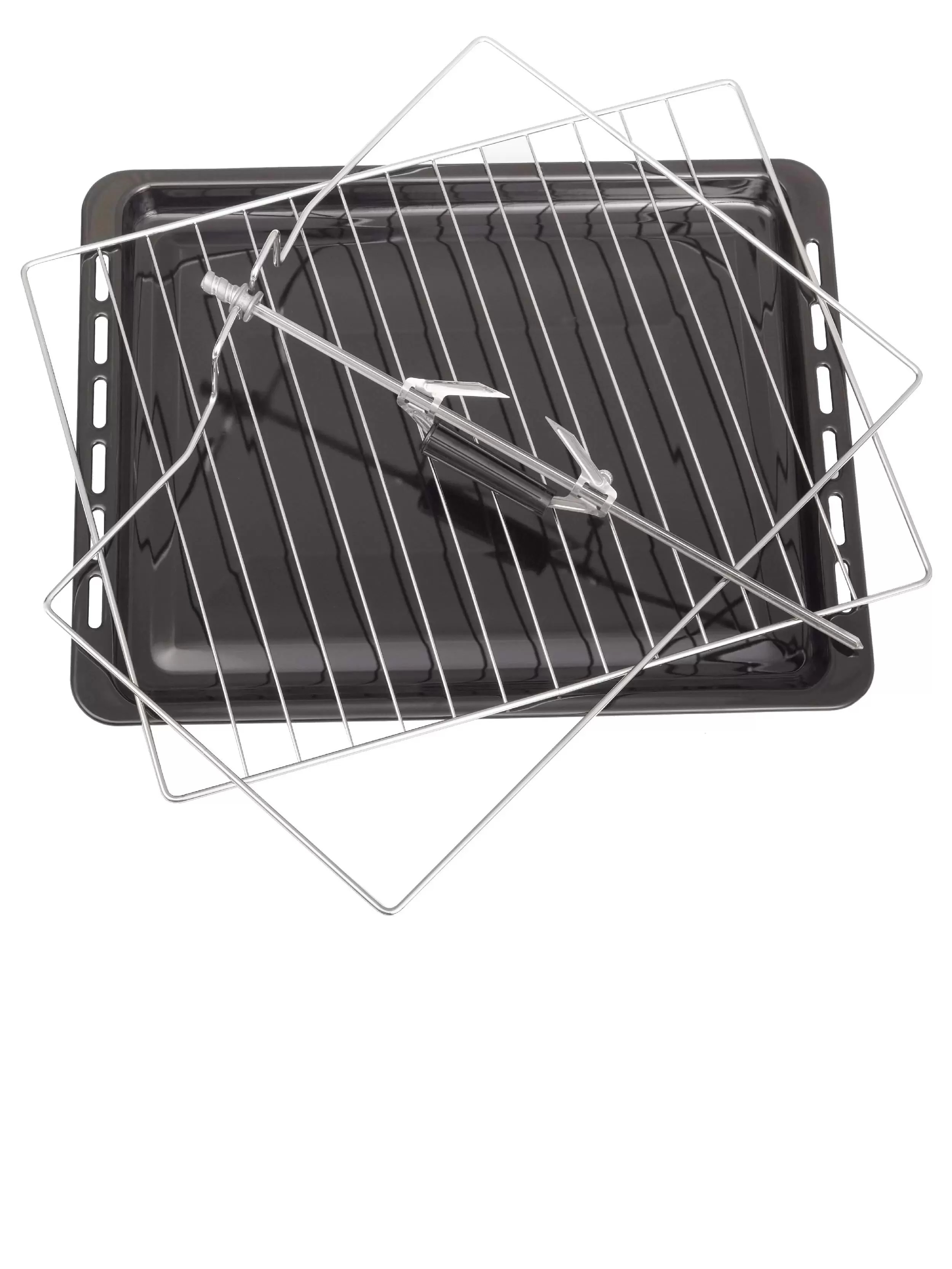Духовой шкаф встраиваемый полноразмерный,газовый,черное стекло, 60 см, 4 режима, объем духовки 67л, поворотные регуляторы, автоподжиг, 5 уровней размещения противней, боковые хромированные рещетки,вертел, универсальный противень, решетка, двойное стекло дверцы, защитное отключение,система охлаждения корпуса, механический таймер,595 х 560 х 575 мм.