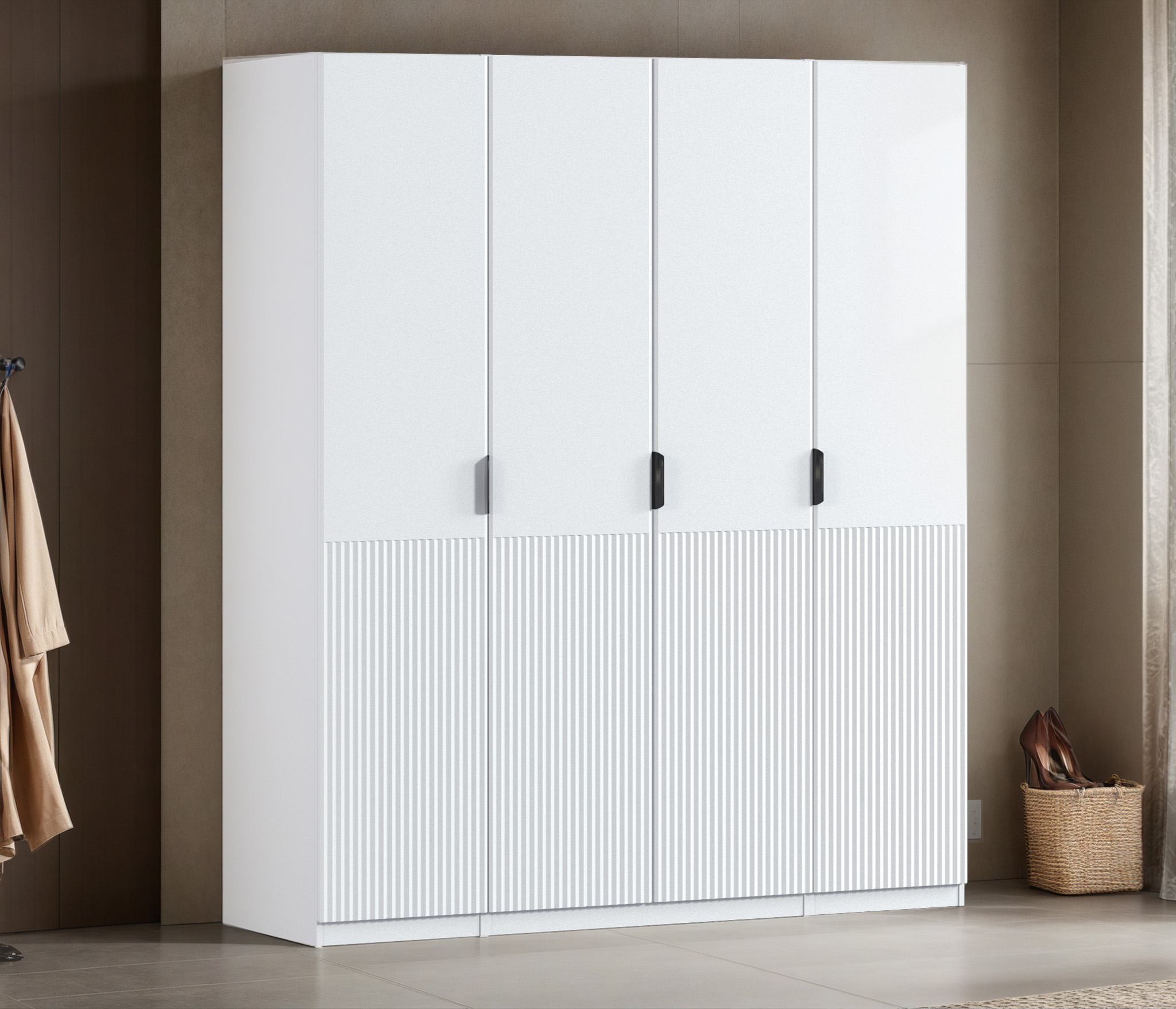 Шкаф четырехдверный Макс 2000 мм, вариант №1 (ЛДСП/МДФ) (Белый)