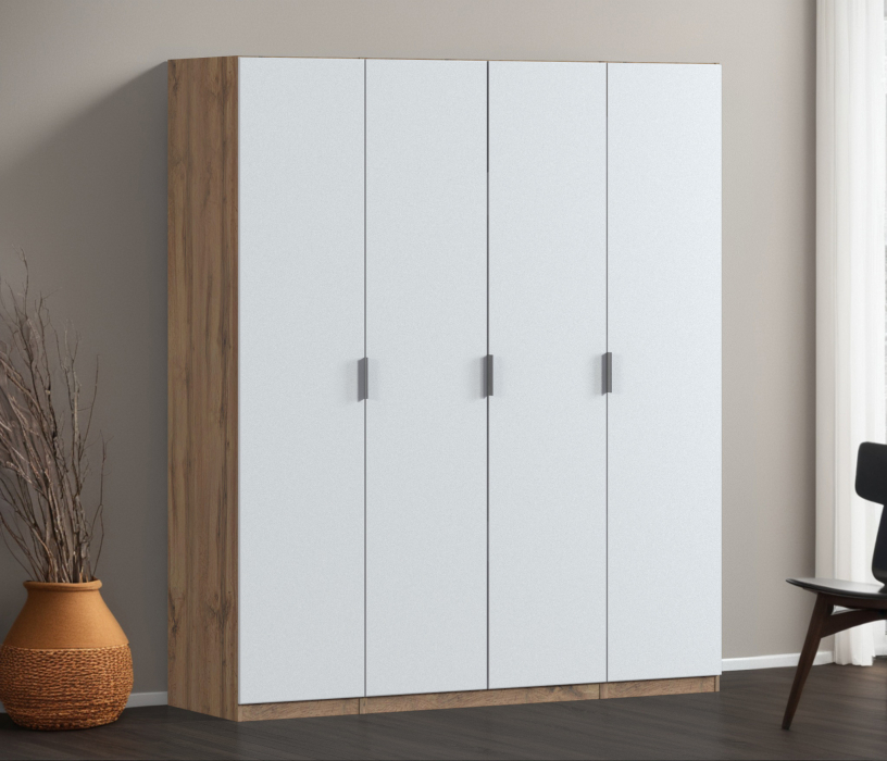 Шкаф четырехдверный Макс 2000 мм, вариант №4 (ЛДСП, корпус дуб вотан) (Белый Альпийский) Код 00000337453