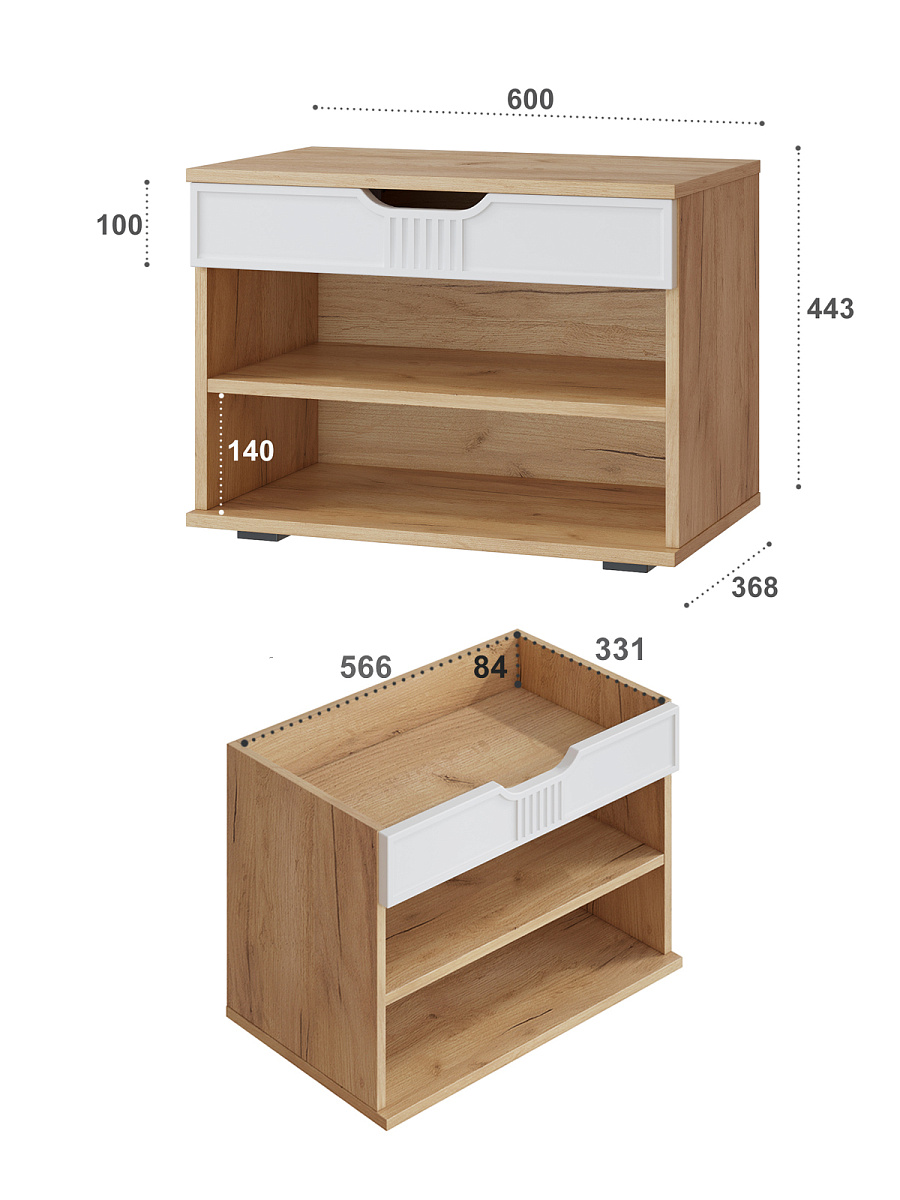 Тумба для обуви Эмилия ЭЛ-44 – компактная модель для комфортного переобувания в прихожую. Лаконичное изделие оборудовано двумя полками для обуви и сиденьем, под которым находится удобный ящик для хранения чистящих средств, щеток или зонта. Высота опоры 20 мм.