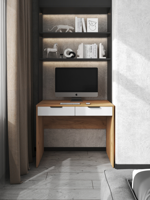 Размеры модуля (ш/в/г) в мм: 1269/1135/1004х880х553 Материал корпуса/фасада: ЛДСП 16 мм, МДФ 16 мм Основные характеристики стола ОП-19: дно ящиков — ДВП 3 мм. прочная стальная опора и тумба с четырьмя выдвижными ящиками для удобного хранения. столешница изготовлена из ЛДСП 16 мм. Преимущества стола ОП-19: Универсальность: подходит для использования в качестве письменного, компьютерного или маникюрного стола. Рекомендуется высокий стул. Фурнитура: телескопические направляющие полного выдвижения без доводчиков, металлические ручки и опора. Доставка и сборка: мебель поставляется в разобранном виде, в надежной упаковке, с подробной инструкцией по сборке. Сборка осуществляется самостоятельно или с привлечением специалистов.