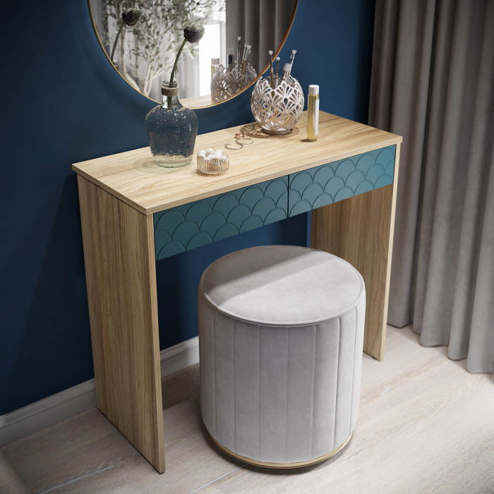 Размеры комплекта (ш/в/г) в мм: 848х760х370 Материал корпуса/фасада: ЛДСП 16мм, МДФ 16мм Стол туалетный Велламо ВО-09 рекрасно впишется в интерьер уютной и комфортной комнаты. Изделие поможет создать достаточно удобное место для наведения красоты. Широкая столешница позволит разместить под рукой все необходимые предметы. Вместительные выдвижные ящики, созданы для бережного хранения косметики, аксессуаров и украшений. Толщина столешницы ЛДСП 16 мм, дно ящика двп 3 мм. Свес крышки в 25 мм обеспечит прилегание к стене с любым плинтусом. Фурнитура: телескопические направляющие полного выдвижения без доводчиков, регулируемые опоры. Доставка и сборка: мебель поставляется в разобранном виде, в надежной упаковке, с подробной инструкцией по сборке. Сборка осуществляется самостоятельно или с привлечением специалистов.
