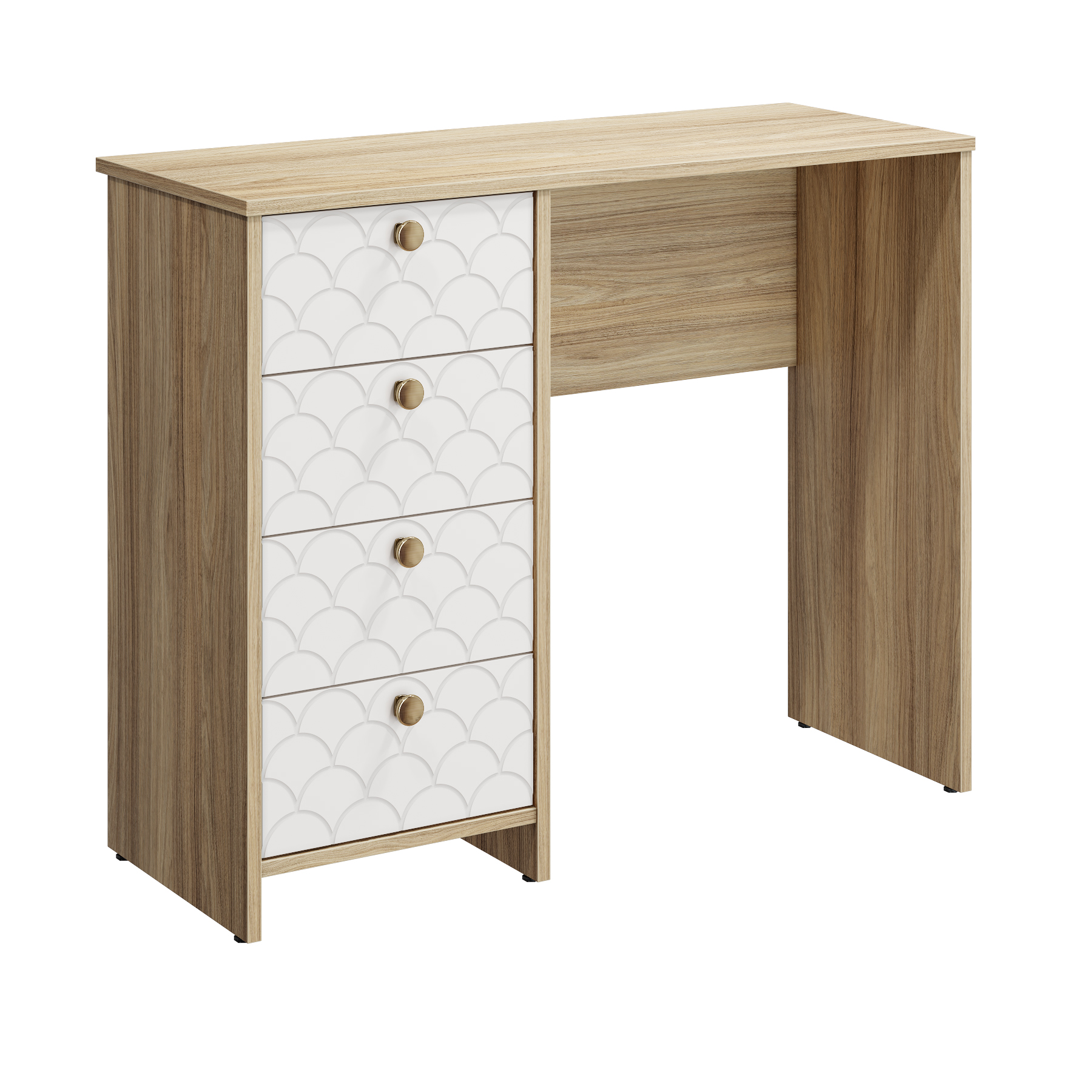 Размеры комплекта (ш/в/г) в мм: 930х760х370 Материал корпуса/фасада: ЛДСП 16мм, МДФ 16мм Стол Велламо ВО-10 прекрасно впишется в интерьер уютной и комфортной комнаты. Изделие поможет создать достаточно удобное место для наведения красоты или рабочей зоны. Широкая столешница позволит разместить под рукой все необходимые предметы. Четыре выдвижных ящика созданы для бережного хранения косметики, аксессуаров и украшений и других предметов. Толщина столешницы ЛДСП 16 мм, дно ящика двп 3 мм. Регулируемые опоры. Стол может быть собран "ЛЕВЫМ" или "ПРАВЫМ". Фурнитура: телескопические бесшумные направляющие полного выдвижения без доводчиков, ручки металл. Доставка и сборка: мебель поставляется в разобранном виде, в надежной упаковке, с подробной инструкцией по сборке. Сборка осуществляется самостоятельно или с привлечением специалистов.