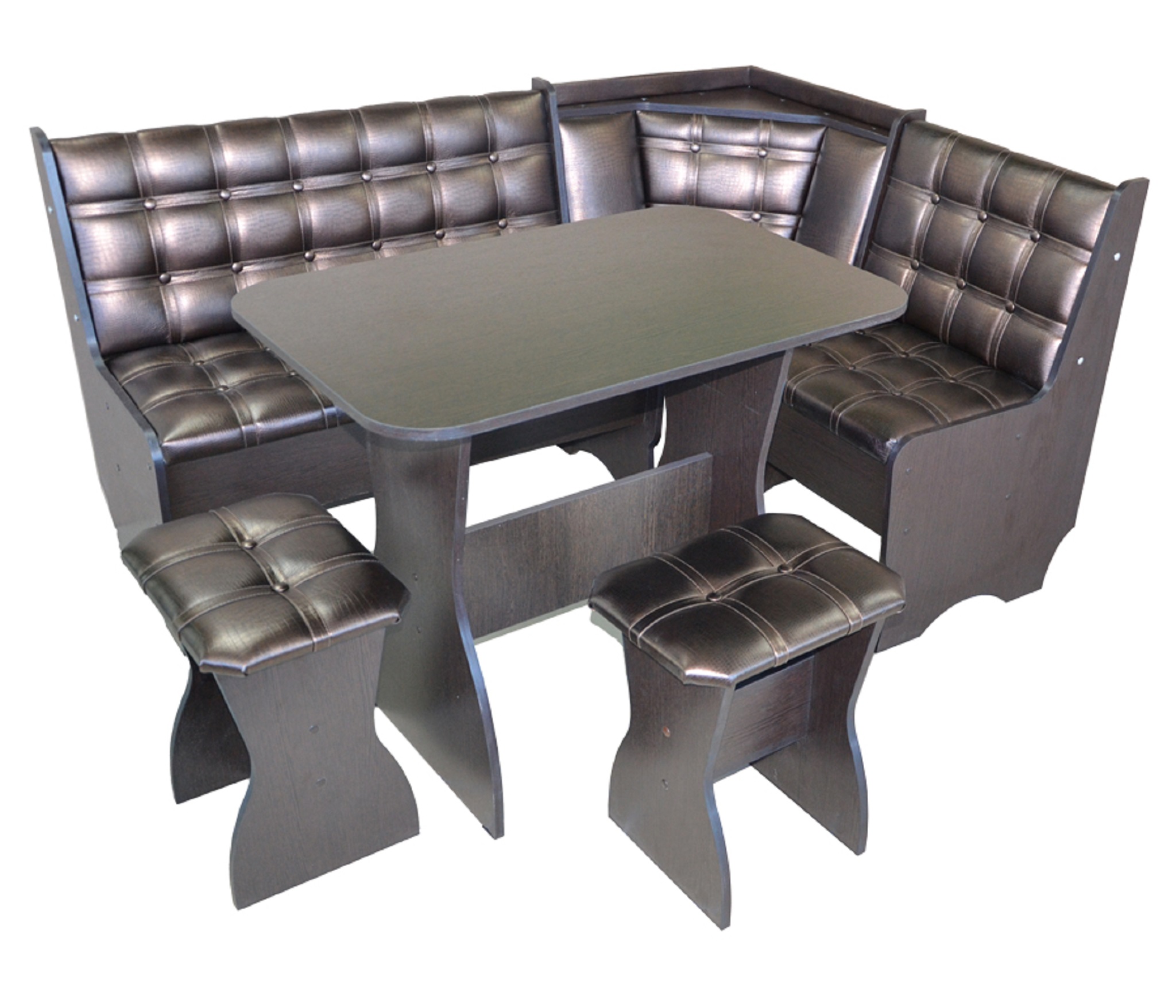 Кухонный уголок состоит из:Дивана углового,Стол прямоугольный НЕРАСКЛАДНОЙ Г*Ш*В 60*90*73 см.Изготовлен из ЛДСП.Обивка микровелюр ,наполнение поролон.Под сидениями дивана есть ящики для хранения.СБОРКА УНИВЕРСАЛЬНАЯ,КАК НА ЛЕВУЮ,ТАК И НА ПРАВУЮ СТОРОНУ!!!