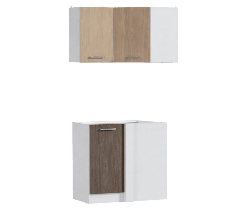 Виктория угловая Кухня Белый/Сосна Авола Шампань/Сосна Авола Коричневая (без столешницы) (Белый/Сосна Авола Шампань/Коричневый)