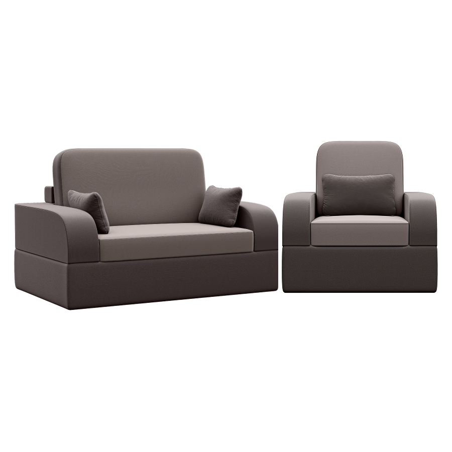 Бескаркасный набор мебели Мико, диван и кресло (Коричневый) Код I0000457836