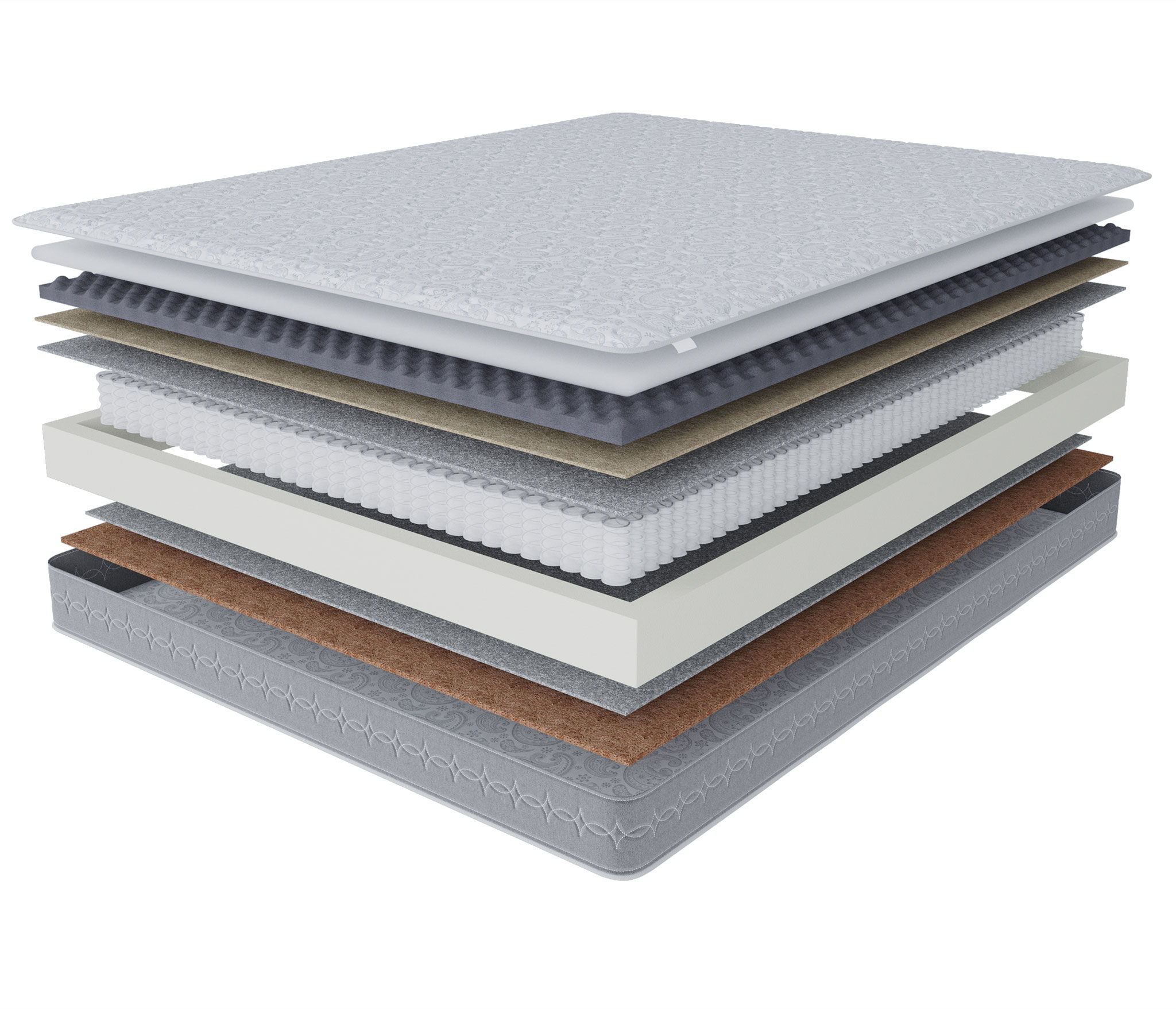 Наполнитель: вязкоэластичная пена с эффектом микромассажа, натуральный сизаль, латексированная кокосовая койра 20 мм, термовойлок