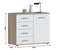Комод Мамбо выполнен из прочного и влагоустойчивого материала. Все выдвижные механизмы прочные и имеют солидный ресурс.