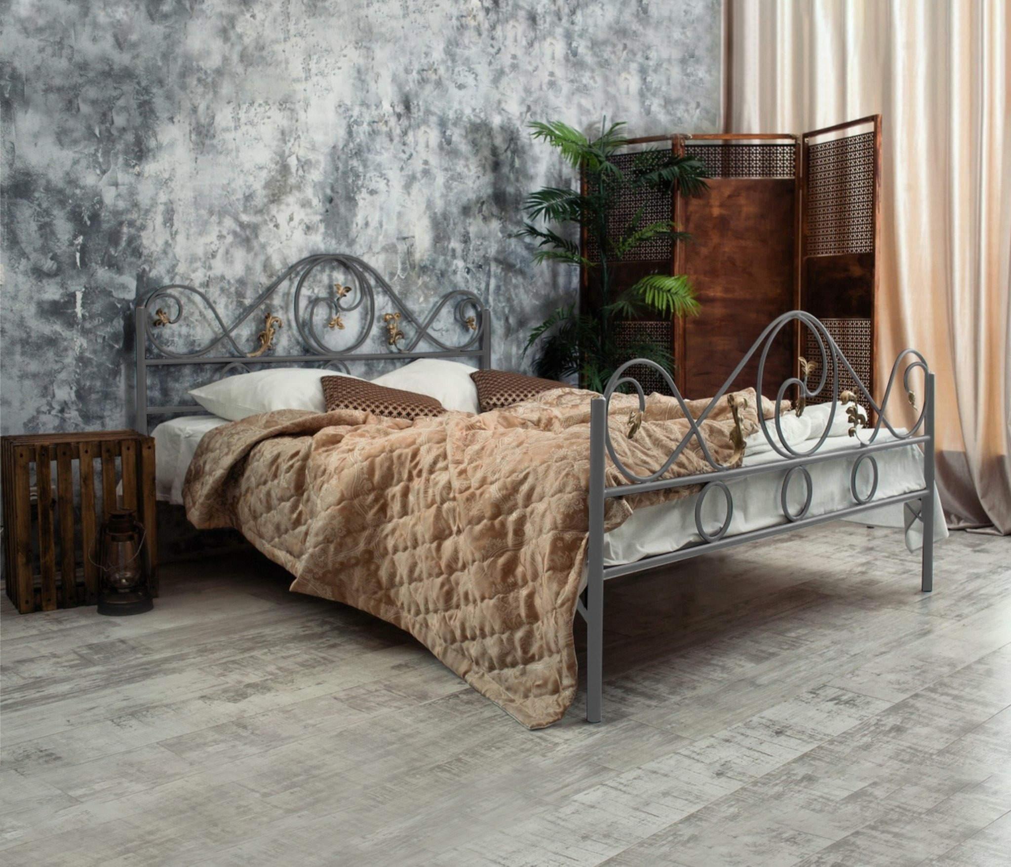 Кованая кровать Венеция 1.4 с двумя спинками (Серый)