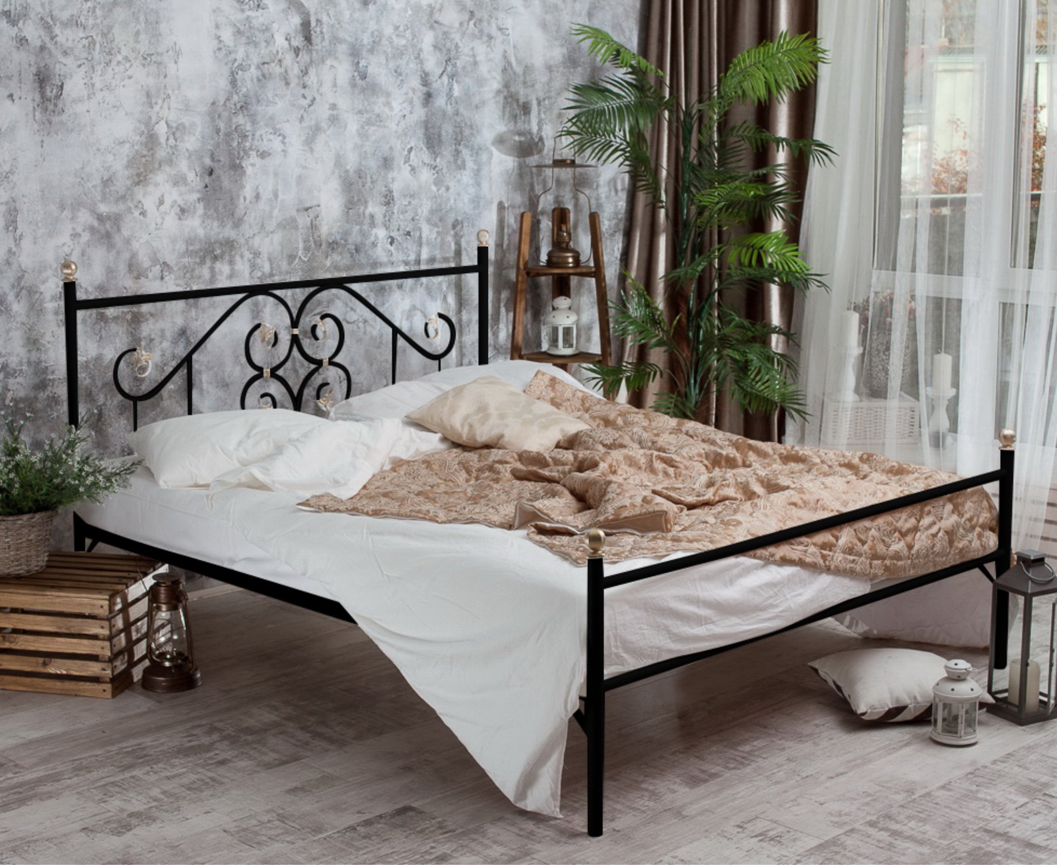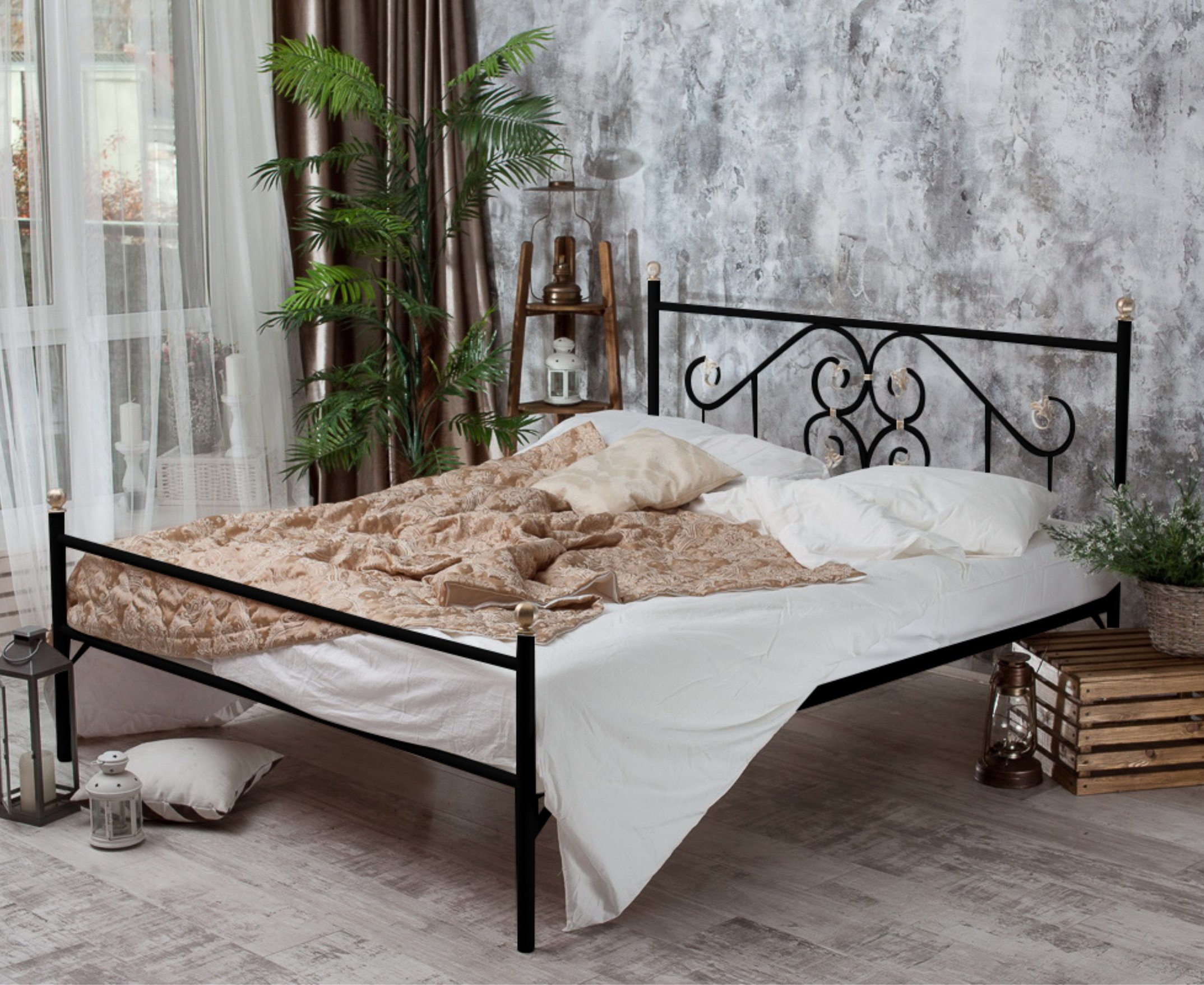 Кованая кровать Камелия выполнена из надежных, прочных материалов, благодаря чему прослужит вам долгие годы.