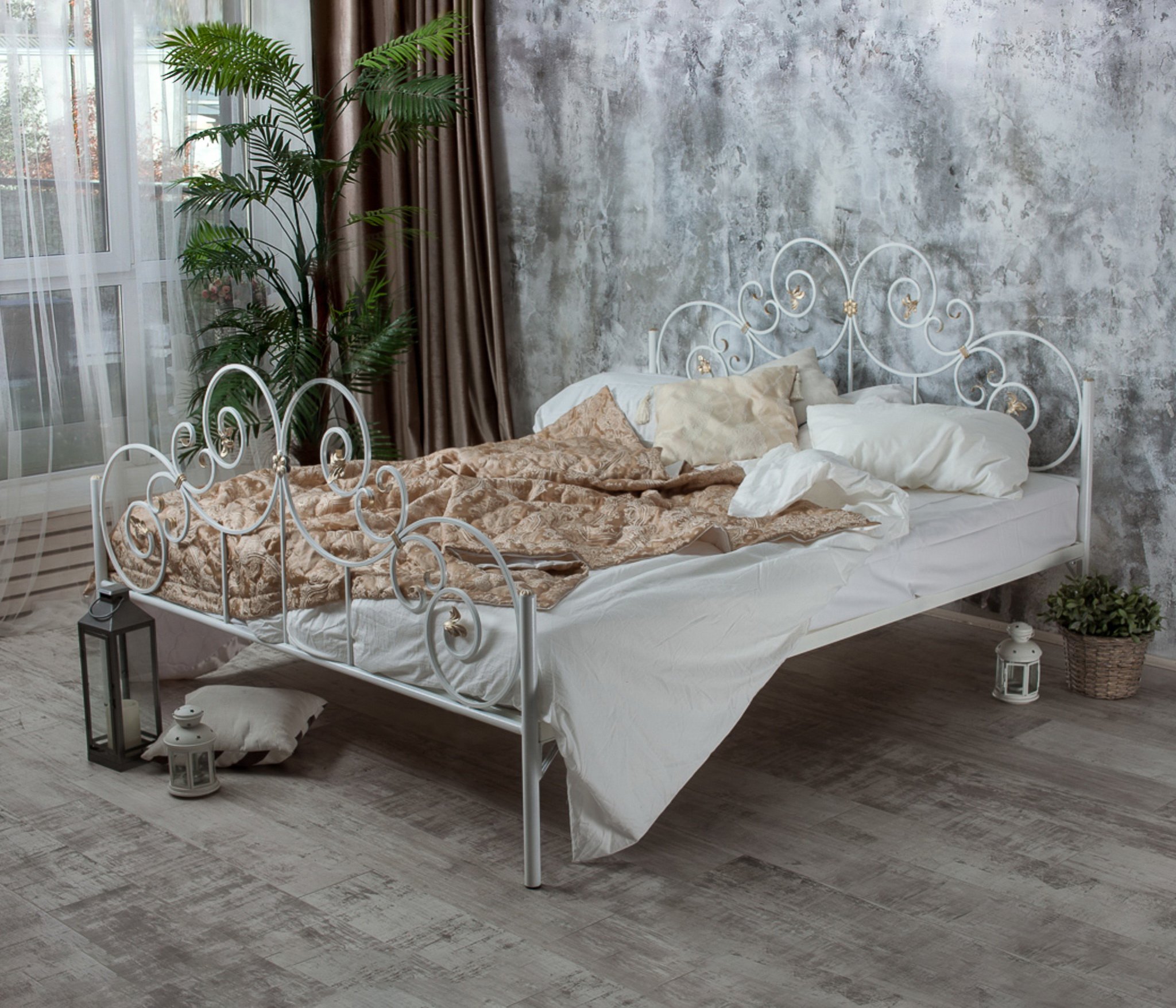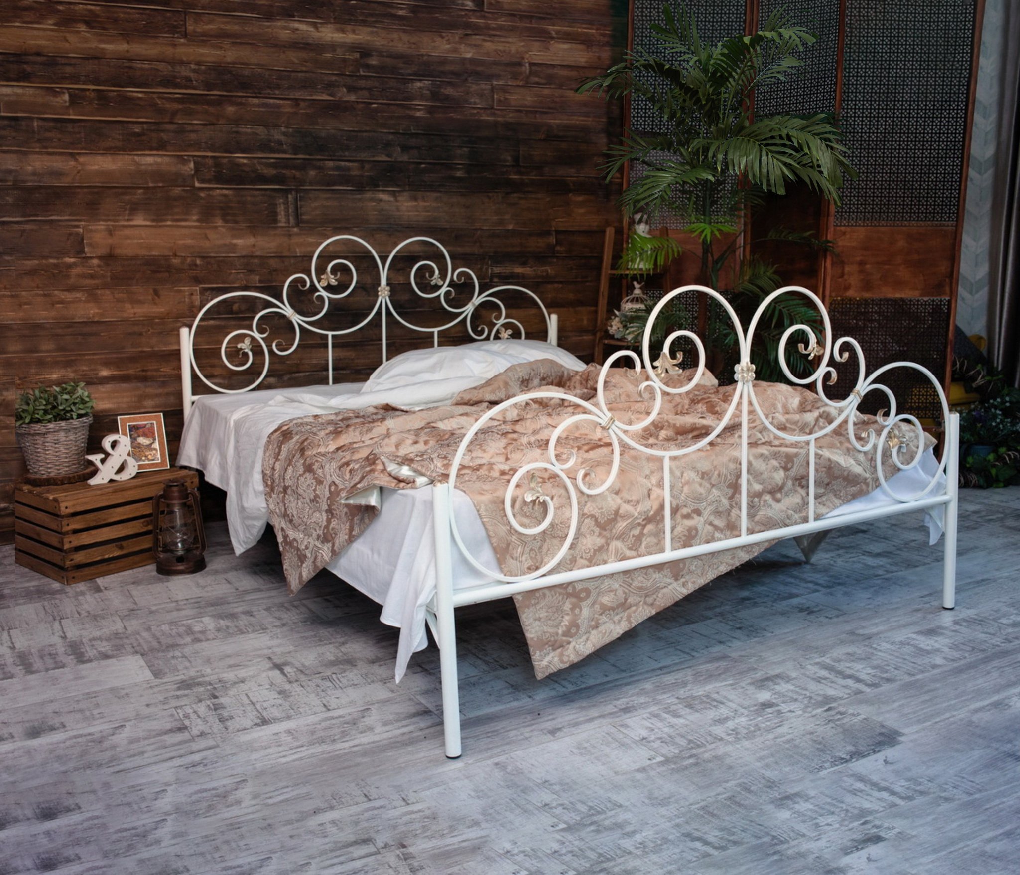 Кованая кровать Афина кроме высокой декоративной ценности кровать невероятно удобна и обеспечивает максимально комфортный ночной отдых. Ортопедическое основание из березовых ламелей поставляется в комплекте.