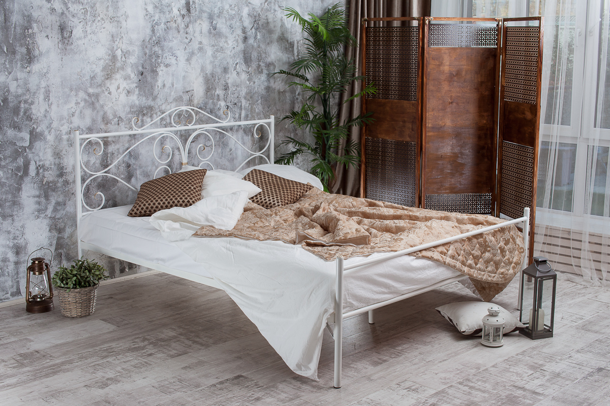 Воздушность и изысканность кованой кровати Валенсия прекрасно сочетаются с ее долговечность и надежностью, обеспеченными качественными и прочными материалами изготовления.