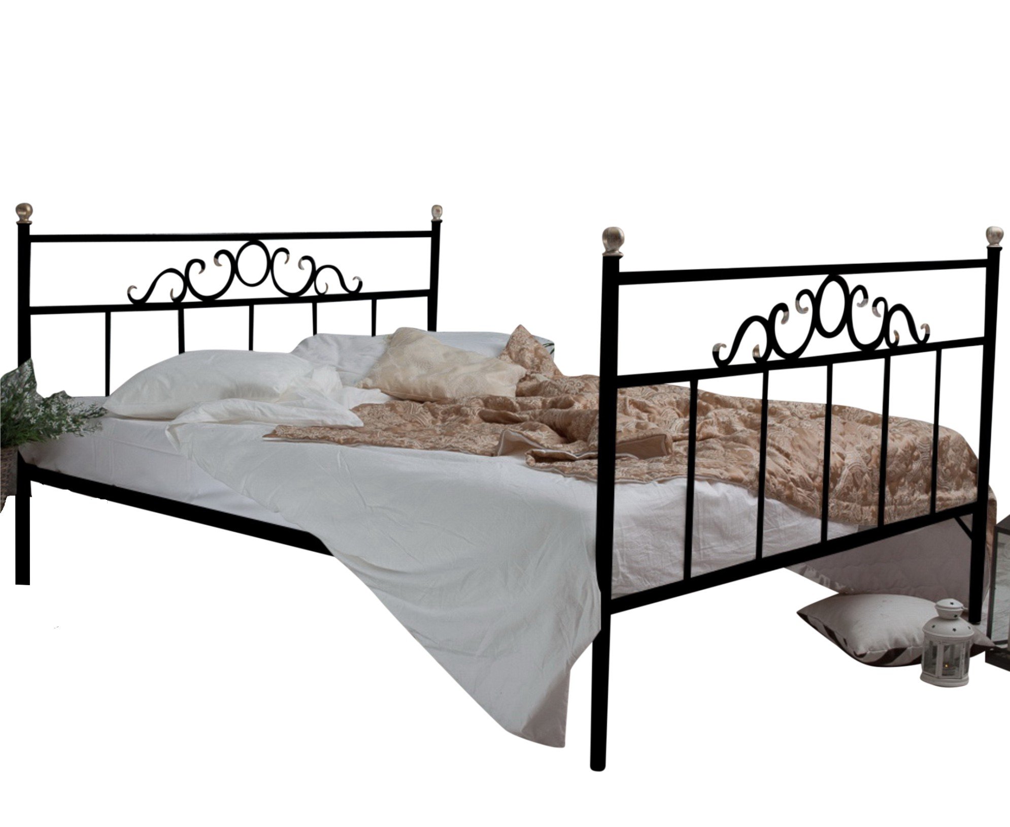 Кованая кровать Сандра1.4 с двумя спинками (Черный)