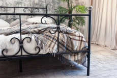 Кованая кровать Симона - это невероятное сочетание эффектного внешнего вида, потрясающих воображение результатов ручной ковки, стильного оформления в темных и светлых цветах и качественных, долговечных материалов исполнения.