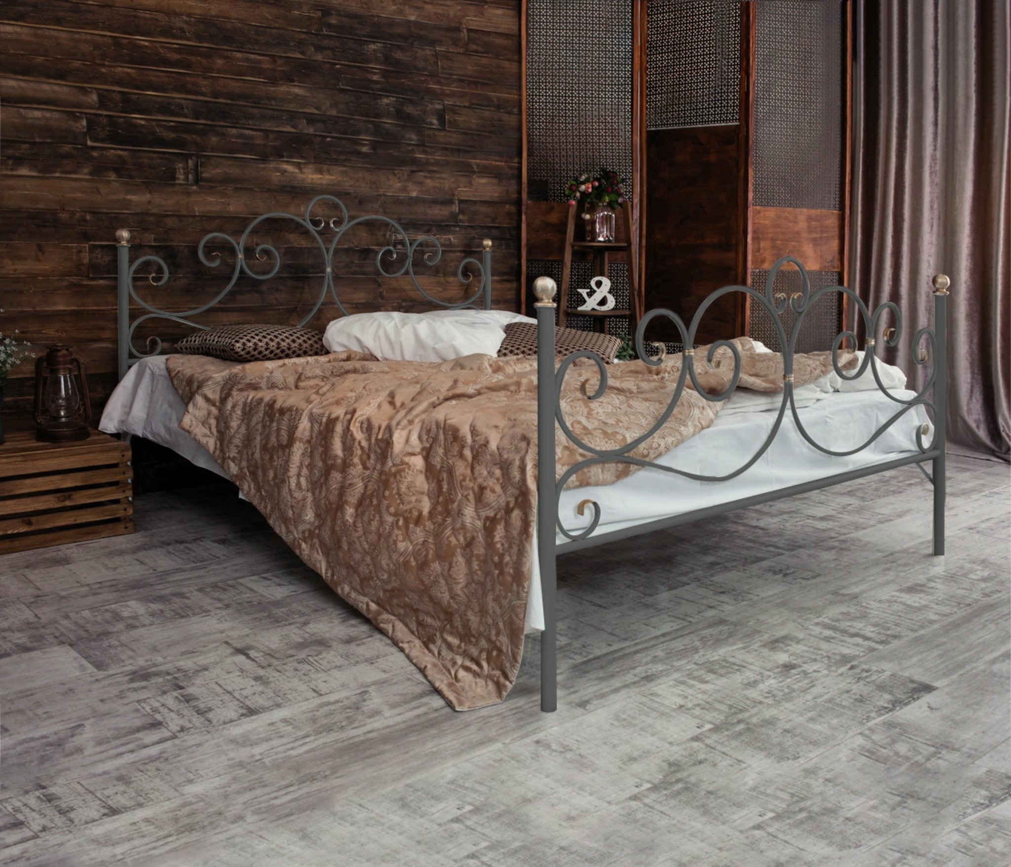 Кованая кровать Флоренция 1.6 с двумя спинками (Серый)