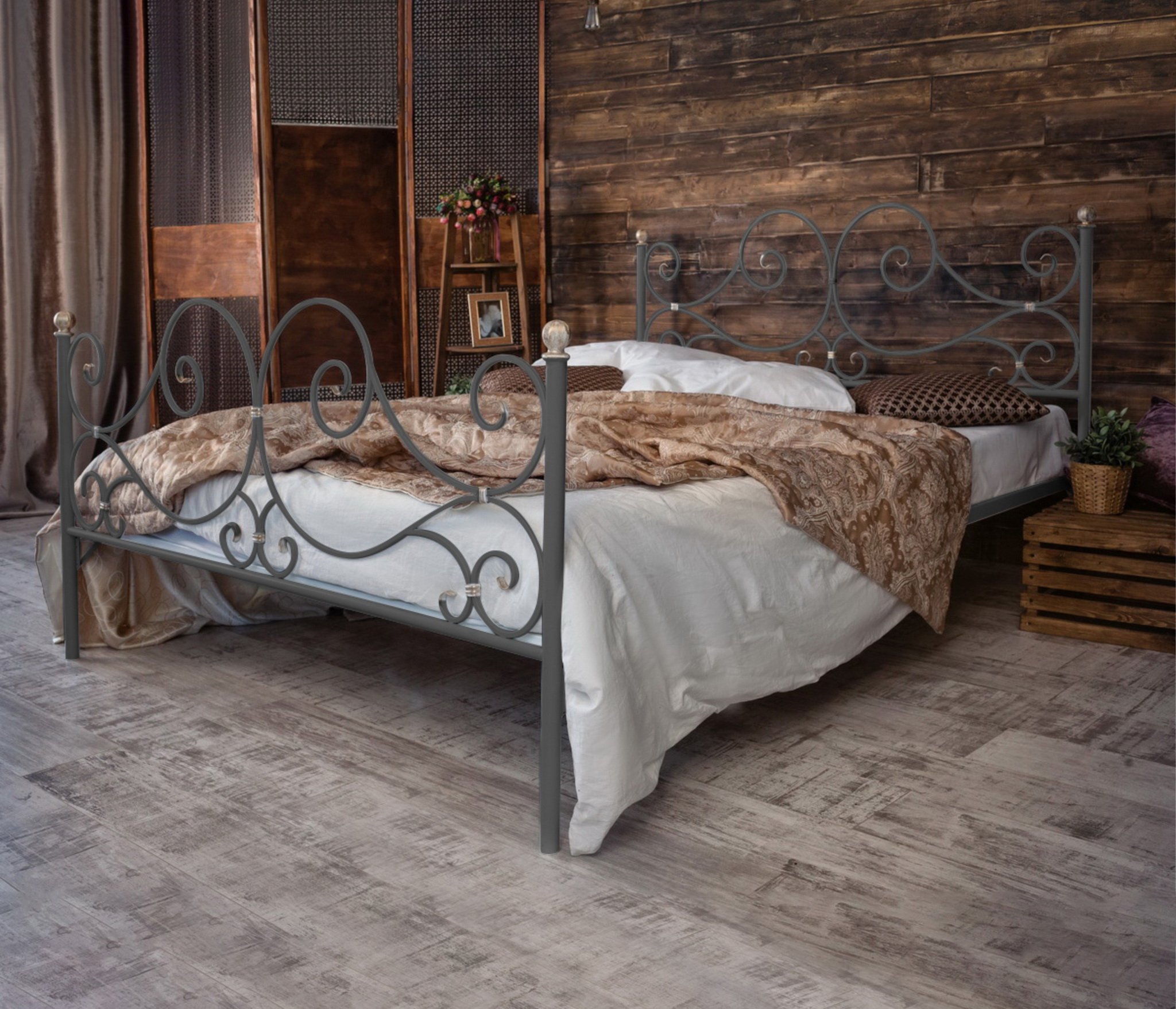 Кованая кровать Верона 1.6 с двумя спинками (Серый) Код I0000295217