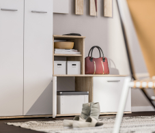 Выполнен шкаф из современного и качественного материала КДСП. Внешняя отделка комбинированная – корпус в цвете «Дуб Сонома», фасады чисто белые.
