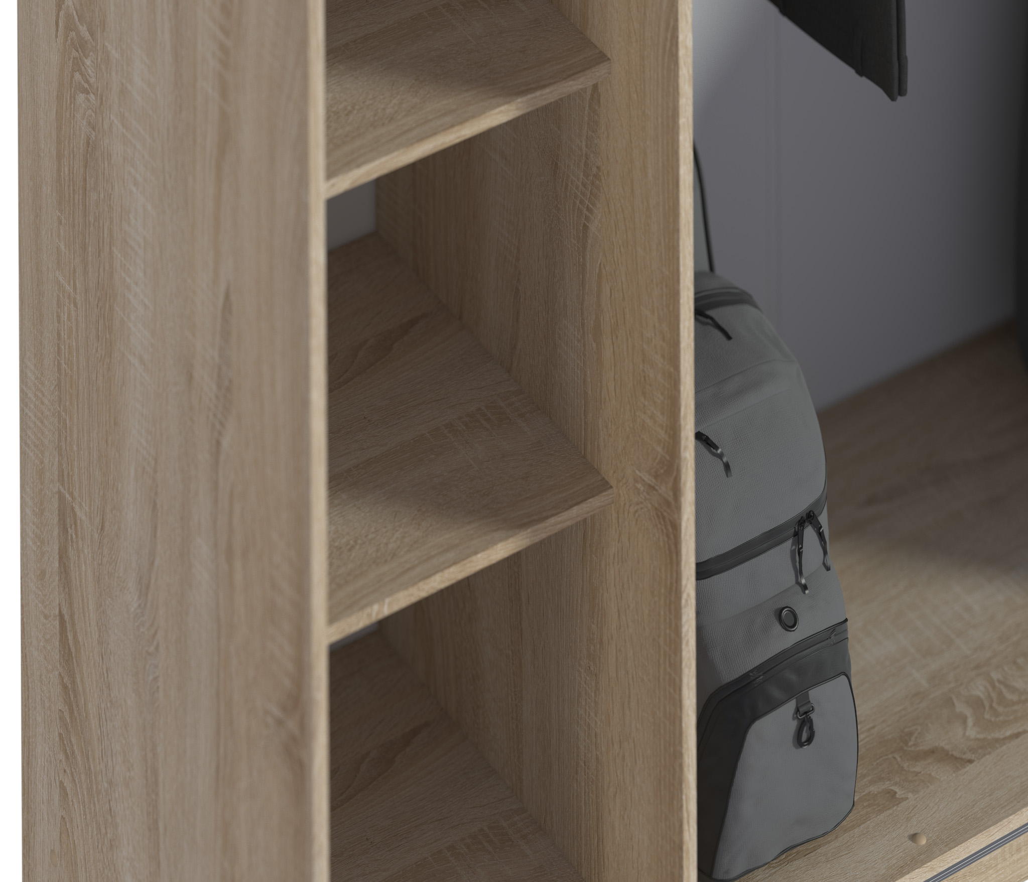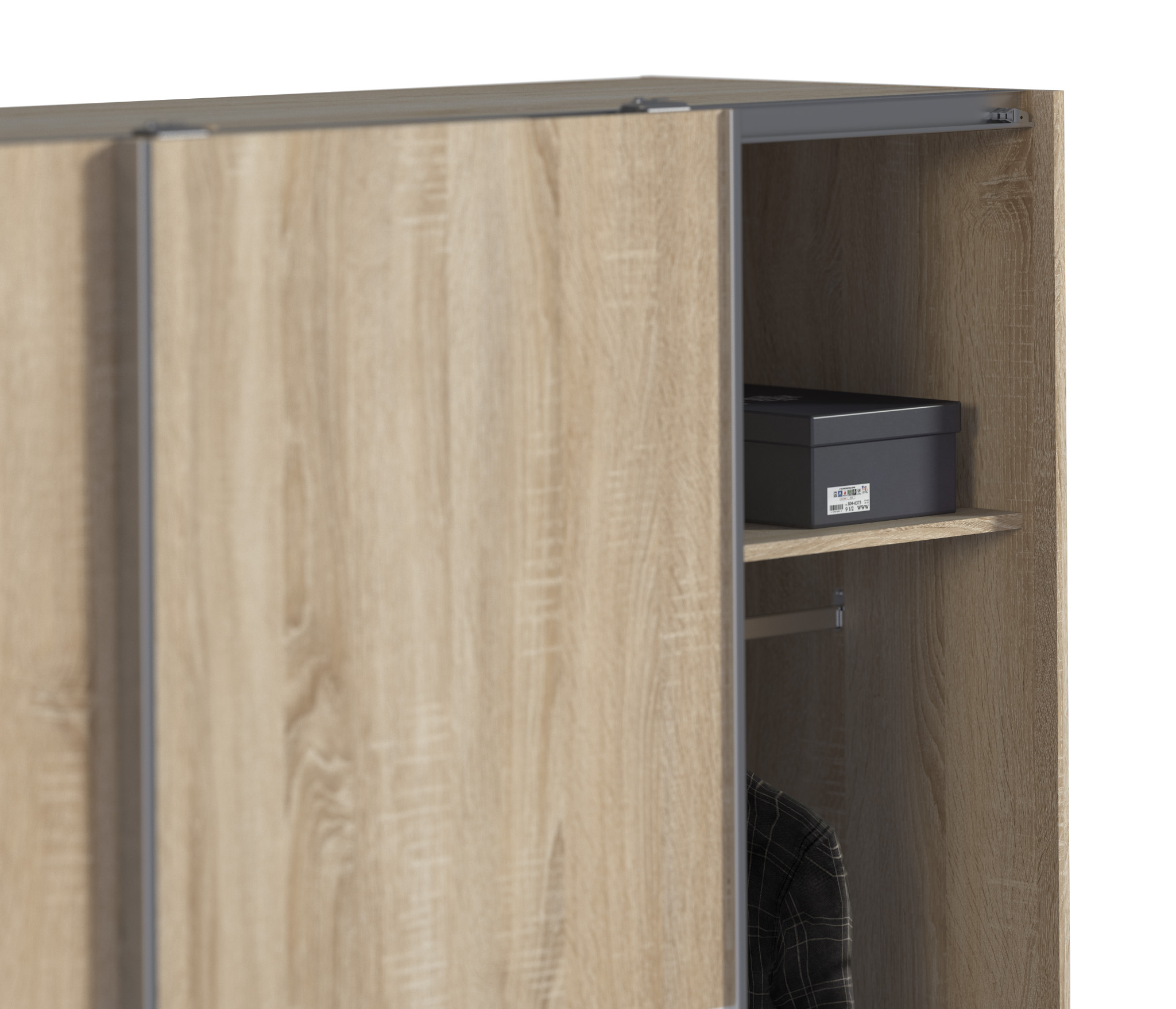 Очень удобный вариант под конкретный размер коридора. В тот же день через 1 час приехал грамотный сборщик и собрал очень качественно шкаф. Остались довольны покупкой.