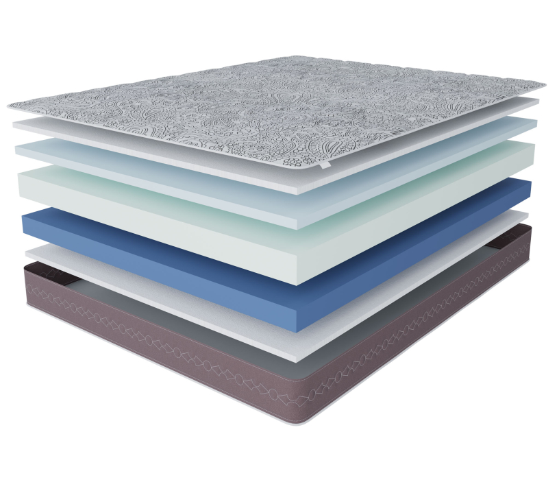 Один из лучших матрасов в нашем ассортименте беспружинных матрасов. Основу матраса составляют 3 вида премиальной пены. Верхний слой - пена с памятью формы, которая создает воздушность и комфорт, точно повторяя и запоминая, каждый изгиб тела. Средний слой- слой пены, которая обладает исключительной упругостью, этот слой принимает на себя основную нагрузку и распределяет ее по всей поверхности, оказывая обратное давление лишь там где это необходимо. Нижний слой сделан из особо жесткой и прочной пены, которая и позволяет матрасу выдерживать очень высокие нагрузки на спальное место (до 150 кг). Чехол матраса выполнен из особо мягкого трикотажа высокой плотности, итальянского производства, ткань чехла не впитывает запахи и легко отмывается.Бурлет (бок) матраса выполнен из мебельной ткани, которая придает ему законченный вид и увеличивает срок его службы. Чехол стегается на 15 мм пене. Матрас можно заказать в скрученном в рулон виде, данный вид упаковки значительно упрощает транспортировку, ведь в рулоне он поместиться, почти в любую, легковую машину. При выборе матраса следует помнить о том, что любой матрас не отвечает за правильность положения головы и шеи, их здоровье зависит от правильно подобранной ортопедической подушки. Для увеличения срока службы матраса рекомендуется его использование с защитным чехлом AquaStop.