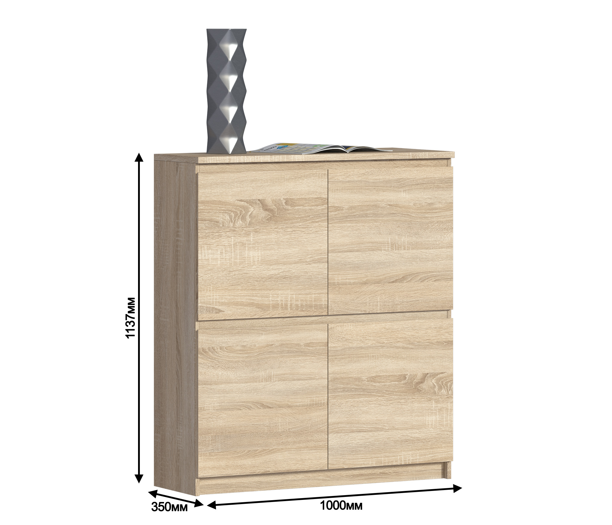 Комод Веста СБ-2255 Белый отлично выпишется в интерьер кабинета, гостиной, спальни или прихожей. Это практичная и функциональная система хранения.¶Габаритные размеры комода – ширина 100 см, высота 113 см и глубина 35 см. Четыре горизонтальные полки разделены на отделения в половину ширины. Это удобно для организации хранения вещей. Каждый из четырех секторов имеет отдельную дверцу.Комод Веста выполнен из прочного материала, что устойчив к мелким царапинам и влаге.