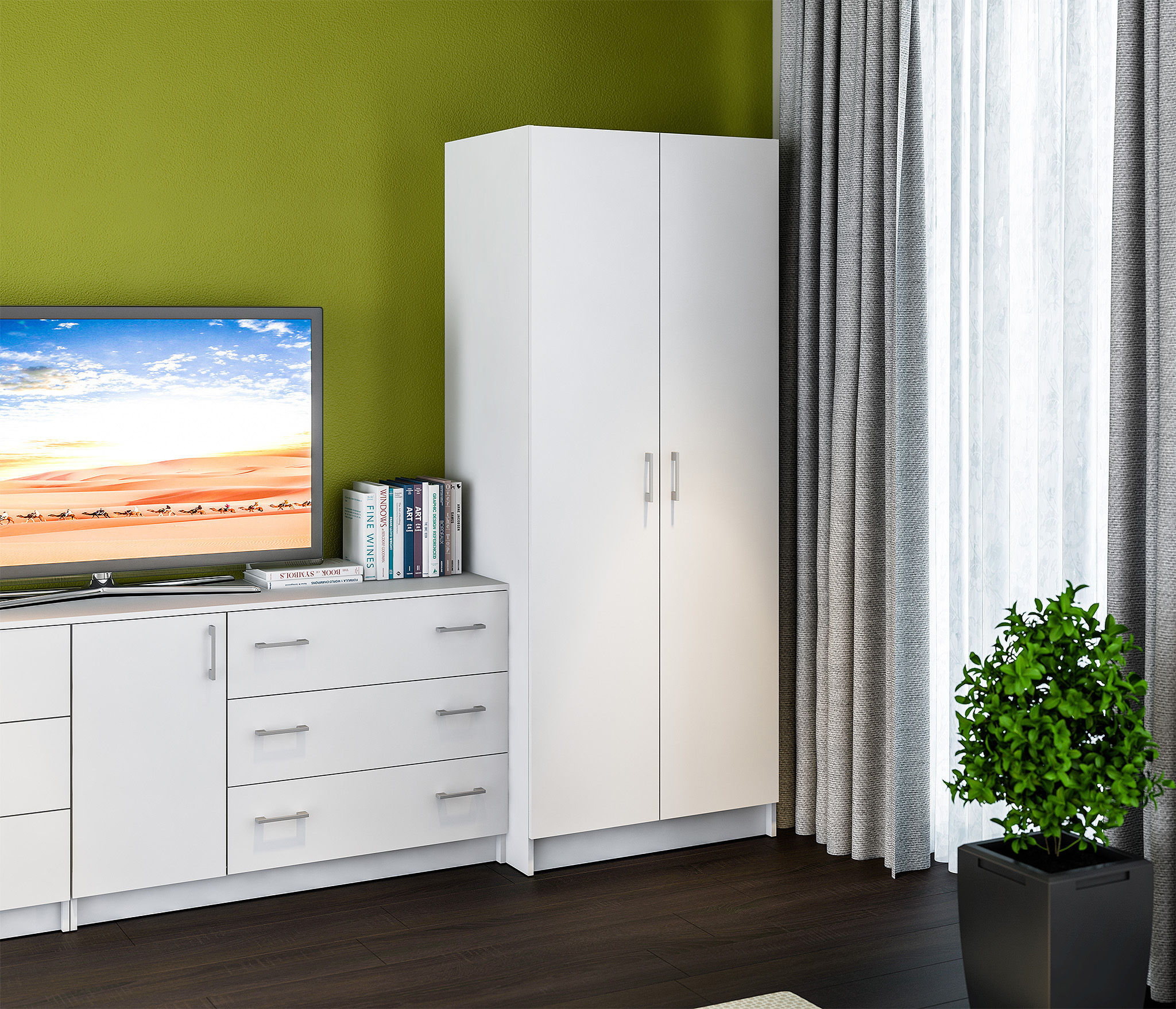 Двухдверный шкаф Терра (Лофт) СБ-2962 – универсальное решение вопроса, связанного с хранением. Благодаря компактным размерам, шкаф можно разместить в небольшой прихожей, детской или кабинете. Габаритные размеры – ширина 80 см, высота 179 см и глубина 51 см. Внутри большое плательное отделение, оснащенное штангой и полкой. Выполнен шкаф из современного и прочного КДСП, отделка в цвете "Дуб Сонома". Также есть возможность заказать такой шкаф в чисто белом цвете из ЛДСП. Шкаф Терра (Лофт) органичен как отдельный предмет мебели, но может быть дополнением к модульному гарнитуру.