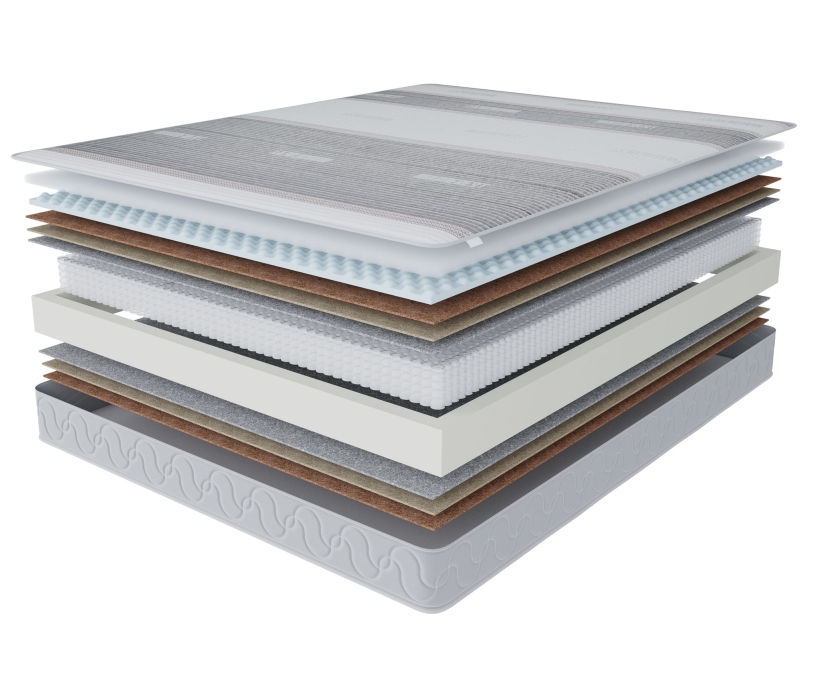 Многослойный матрас, подходящий для пар с разным весом. Многообразие слоев и разность их жесткости обеспечит комфортный сон почти любому. Вязкоэластиный ППУ создает ощущения близкие к материалам с памятью формы, но при этом не увеличивает стоимости самого матраса. Пена с эффектом микромассажа обеспечит полное расслабление после тяжелого дня. В этом матрасе использованы латексированные плиты кокосного волокна и сизаля, имеющие в совокопности толщину 20 мм и 30 мм (разные стороны) обеспечат правильную поддержку позвоночнику и при этом защитят матрас от продавлевания. Этот матрас- гарантия хорошего и здорового сна, что в свою очередь пойдет на пользу суставам и опорнодвигательному аппарату, а в случае уже имеющихся проблем, он поможет замедлить их развитие. Рекомендовано использование вместе с защитным чехлом Аквастоп